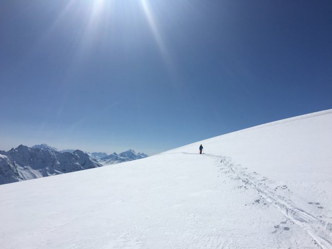 Im Aufstieg durchgehen gute Verhälrnisse, Harscheisen waren heute nirgends nötig.