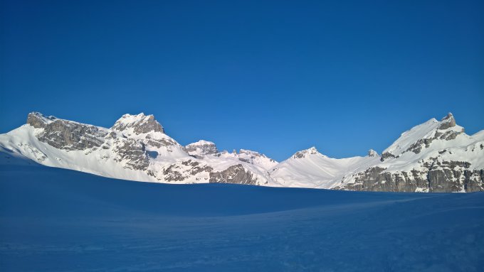 Im Aufstieg zum Glatten auf der "Autobahn" hoch. Die Abfahrten zum Firnerloch, Läckistock und Mären im besten Pulverschnee. Vom Vorderist ins Sali teilweise mit leichtem Deckel, aber mit breiten Skis kein Problem.