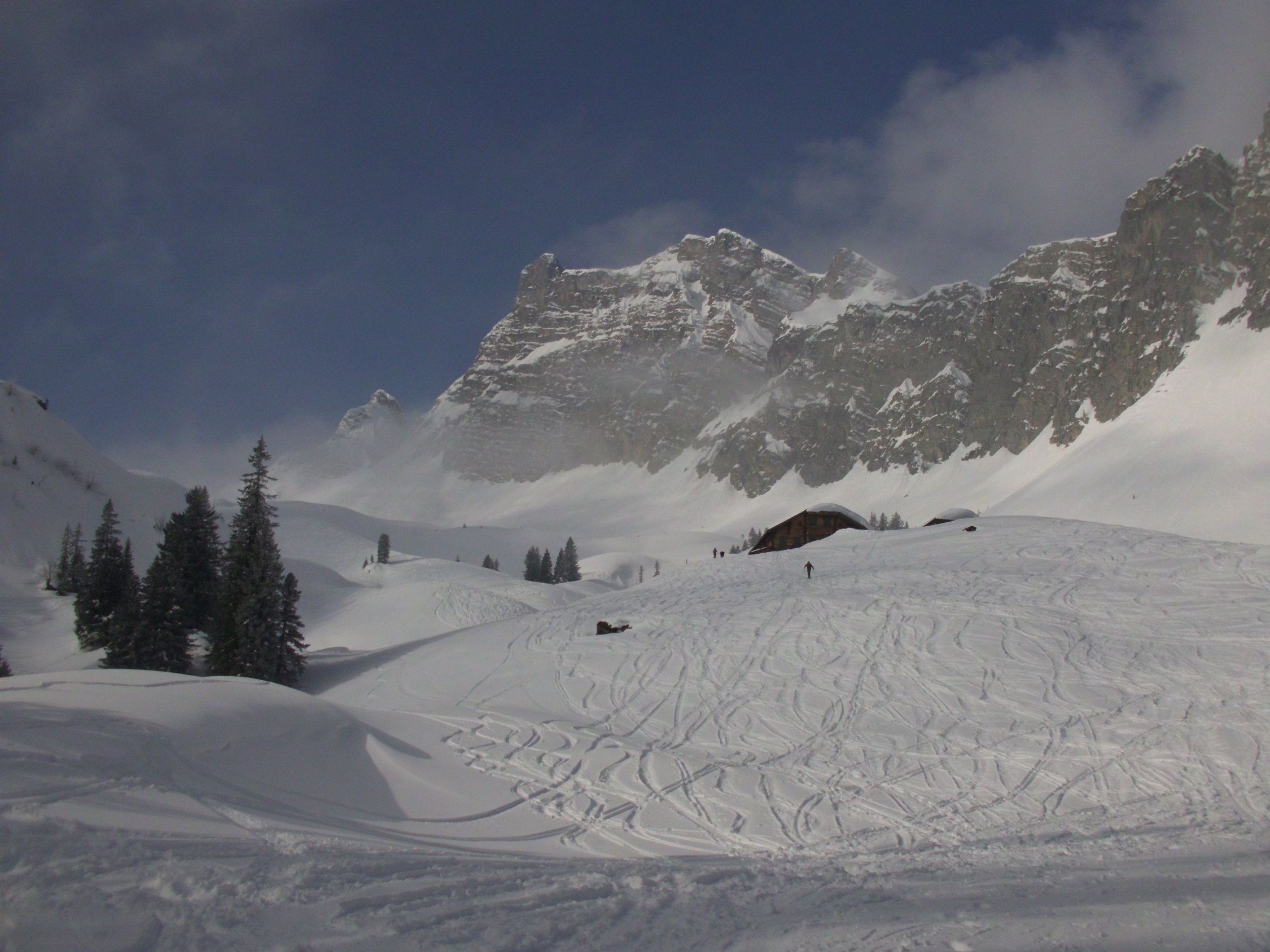 Ab Grimmifurggi mehrheitlich Pulver, im Wald dann Pisten ähnlich.