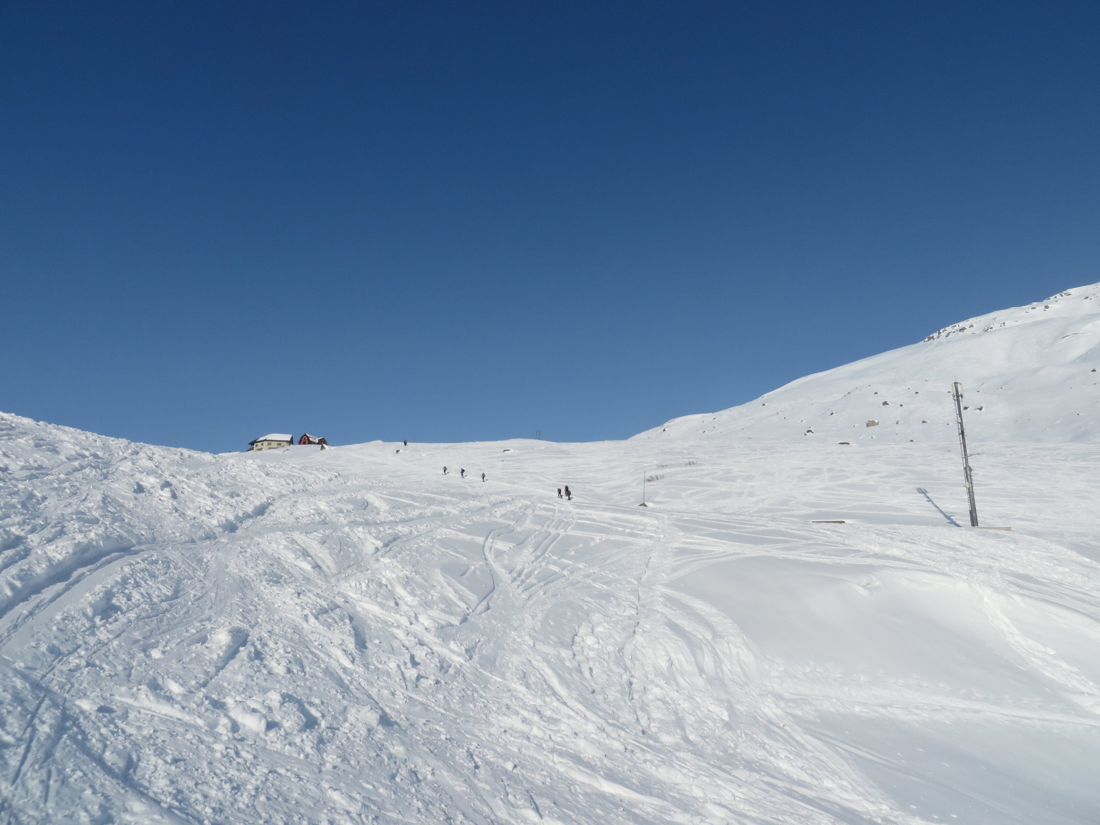 Wir sind dann westlich vom Chräiennest durchgefahren und suchten eine direkte Linie zum Hotel Tiefenbach. Die Hänge waren von aufgesulzt bis Nass zum fahren.