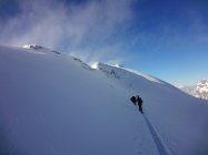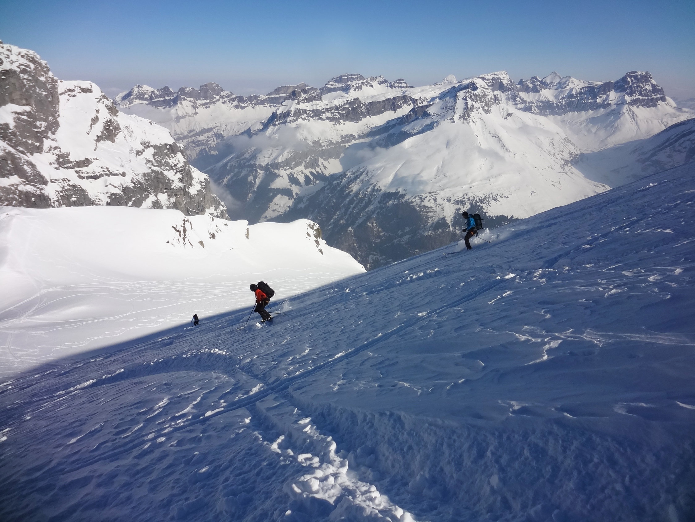 Abfahrt nach Engelberg: Bis unterhalb des Grassen-Biwaks super Pulver, dann stark windgepresst, zunehmend Bruchharst, schliesslich alle Arten von Deckel, Karton, Beton, etc. - Zum Abwinken.