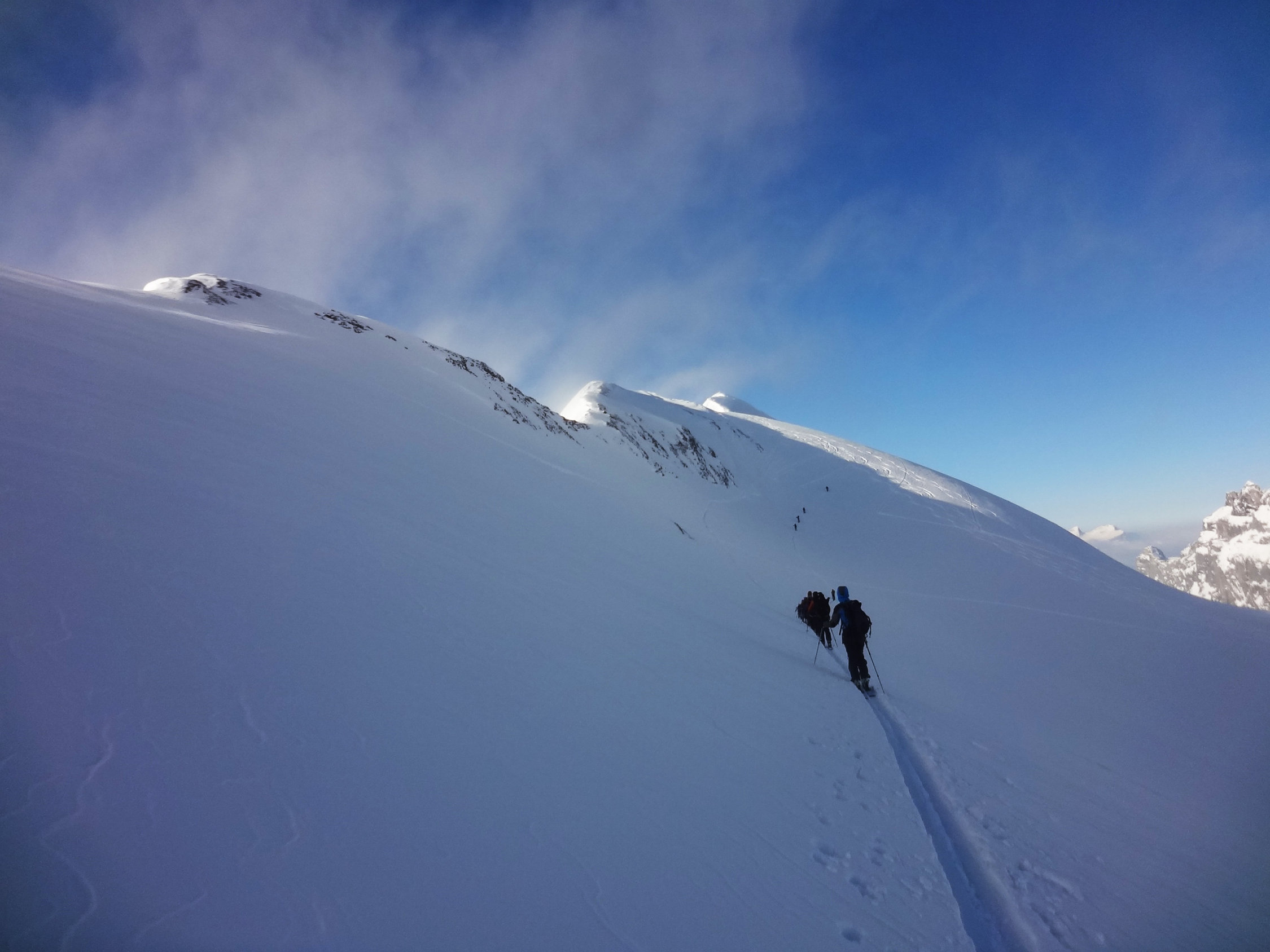 Dies war der dritte Tag der legendären Skitour des Grimselvereins. Nach zwei Tagen feinstem Pulverschneegenuss am Giglistock und am Fünffingerstock, mussten wir heute harte Realitäten akzeptieren.