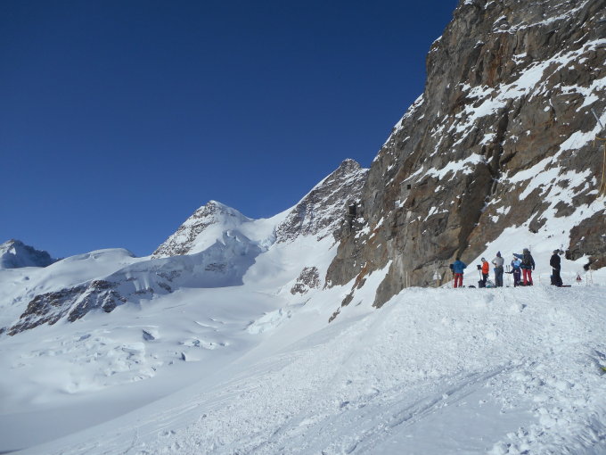Wetter: Temperatur beim Start auf dem Jungfraujoch -8 Grad. Hier windstill und in der Sonne angenehm. Temperatur im Louwitor -12 Grad, und ca. 30Km/h Wind. Traumhaftes Hochgebirgswetter.