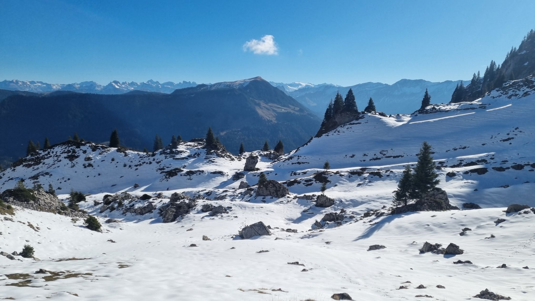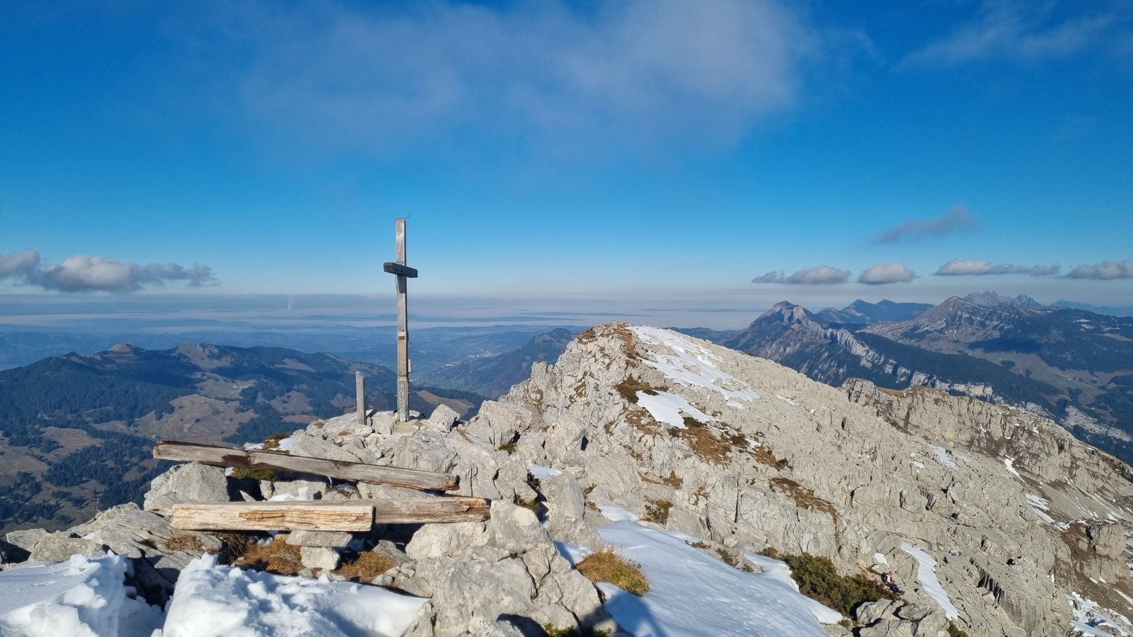 Die Sicht war toll, bis ab Mitte Nachmittag erste Wolken aufkamen. Da meist sonnig und windarm reichte Phasenweise ein T-Shirt.