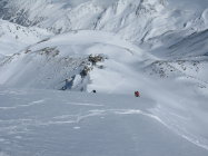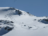 Exponierte Flächen alle abgeblasen und von einer lockeren Pulverschneeschicht überdeckt. Südflanke Mattwaldhorn / Simelihorn schlecht eingeschneit. Daher auf Abfahrt nach Saas Balen verzichtet. Die Einfahrt vom Ochsehorngipfel in die Breitwang verlangt etwas Vorsicht wegen eingeschneiten Steinen, Danach gute Schneeverhältnisse