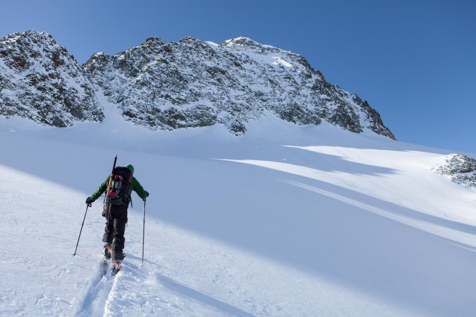 Im Aufstieg gespurt, mit den Ski bis auf ca. 3300m. Ab Skidepot mühsam durch Pulverschnee und lockeren Steinplatten zum Gipfel. Bei der Abfahrt Steinkontakte im Gipfelbereich. Auf dem Rückweg noch zur Tschima da Flix aufgestiegen. Die Abfahrt über den Gletscher zur Hütte mit perfekten Schneeverhältnissen.