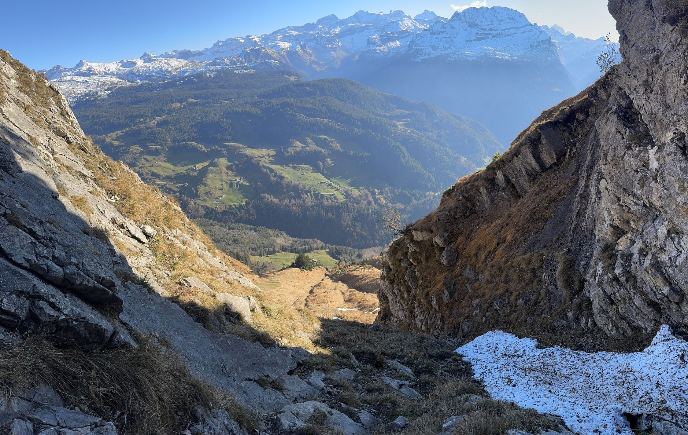 Aufstieg ab Schafmatt , Hinter Heuberig , Vordermären , Mürlenloch zum Tisch ist zur Zeit alles trocken ! Nord Seite Chli- und Gross Stärnen Pulverschnee . Abstieg über Tritt nach Hinter Heuberig Schafmatt wieder alles trocken ,
