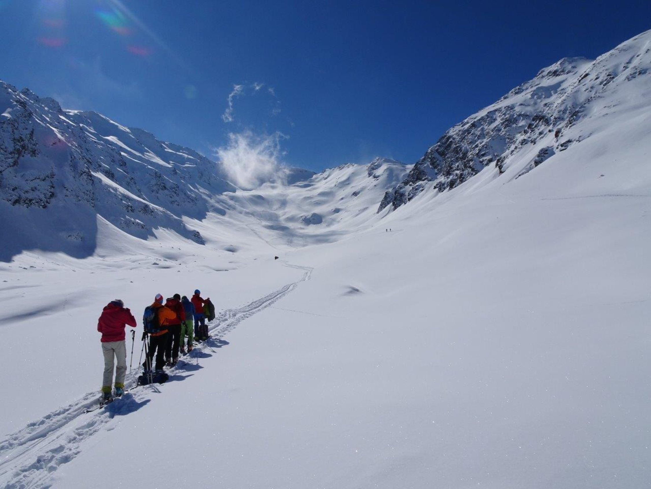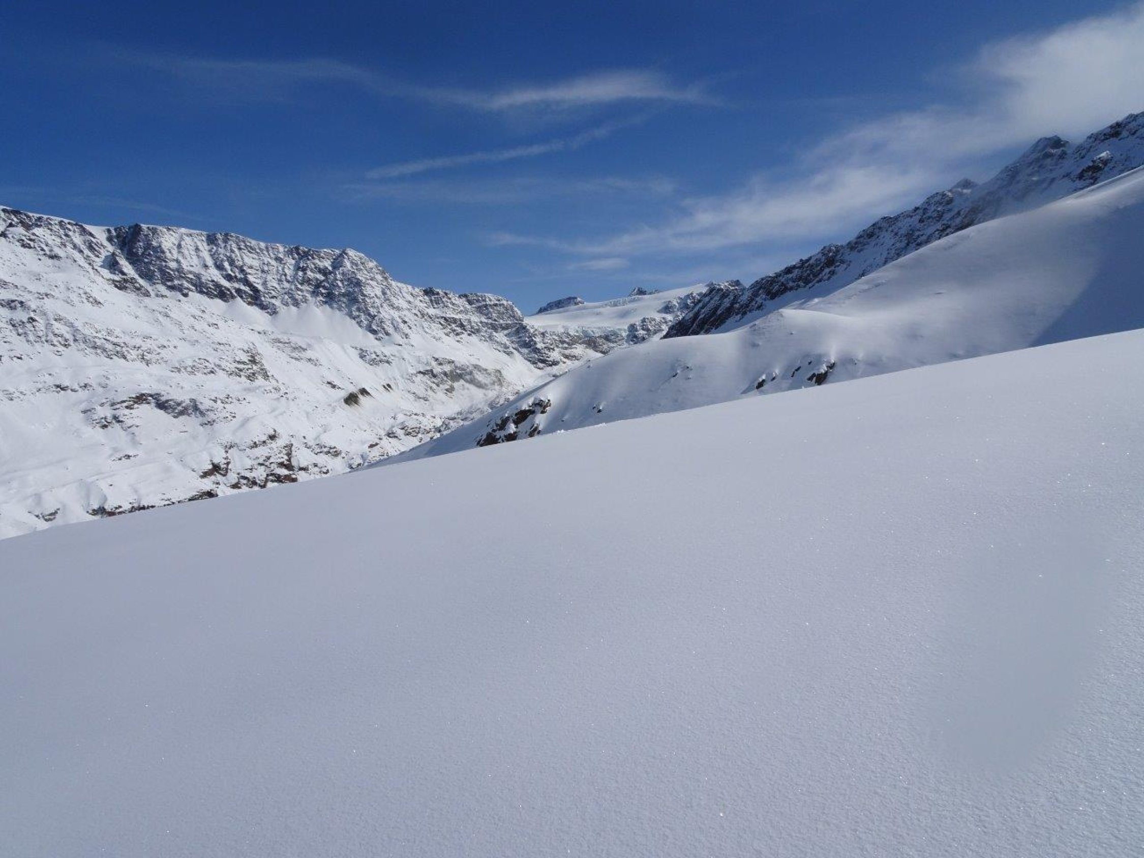 ab Dorf Melago im Langtaufers das Langtaufers oder eben, Vallelunga in der Region Graun im Vinschgau am Reschensee, ist ein Skitoureneldorado der feinen Art. Es gibt unzählige Tagestouren ausgehend ab Melago. Die Aufnahmen sollen einen kleinen Einblick geben - sowohl orografisch Links wie Rechts ist die Auswahl in diesem Tal gross. Wir sind überwiegend an den nordausgerichteten Gipfeln mit den weiten und offenen Pulverhängen unterwegs gewesen.