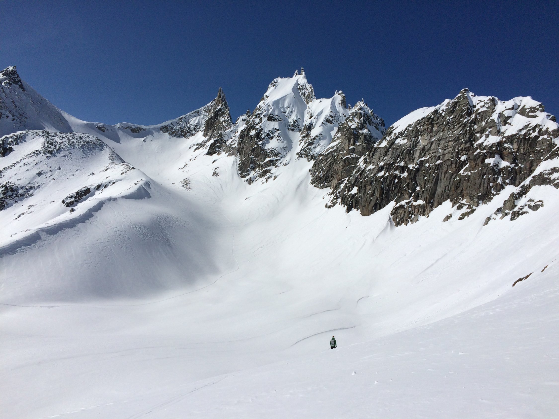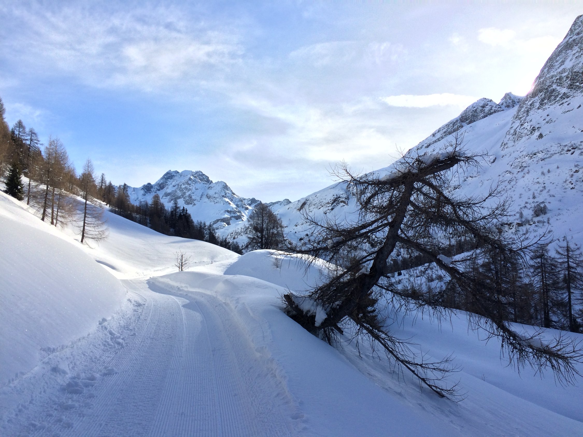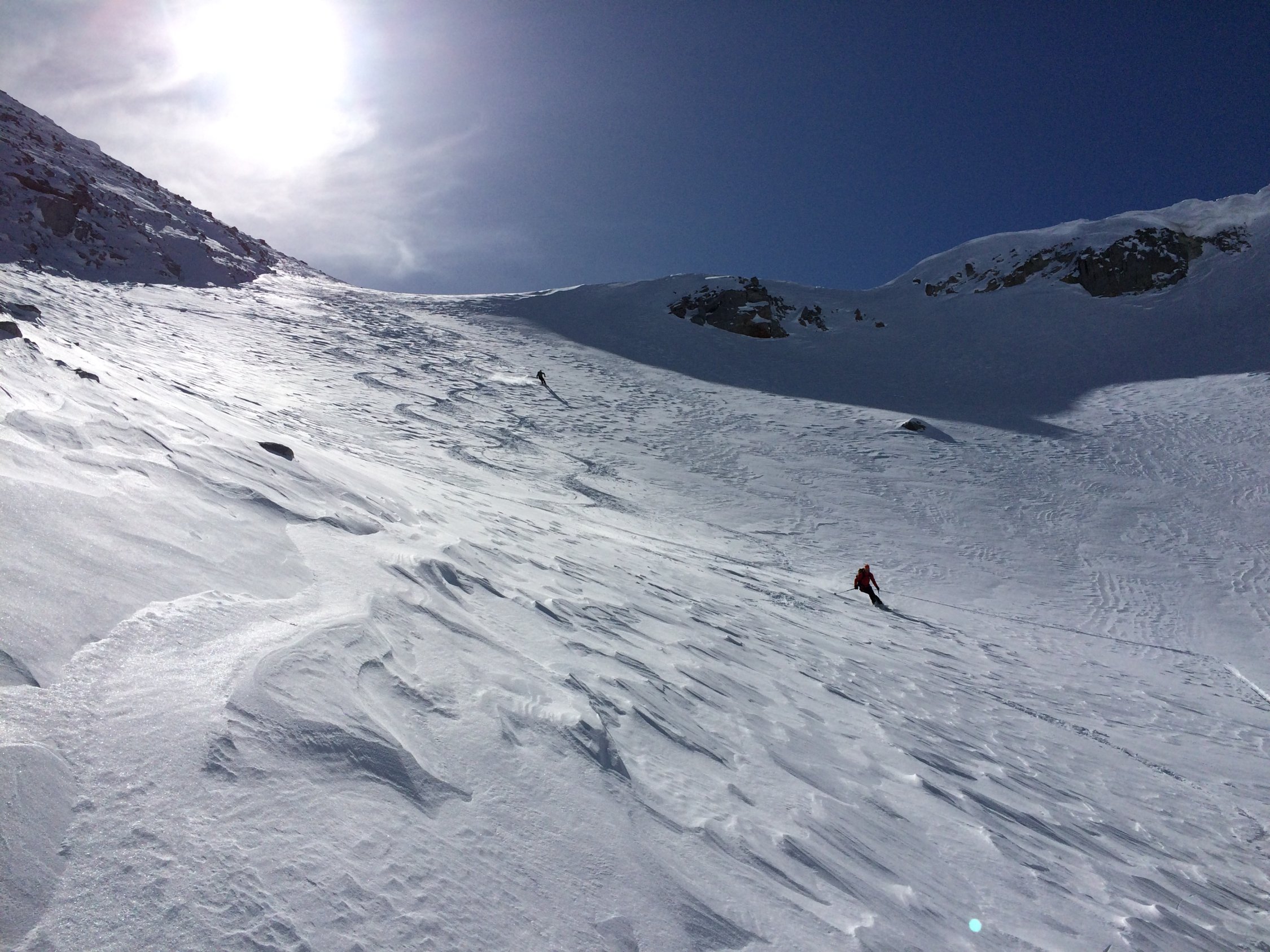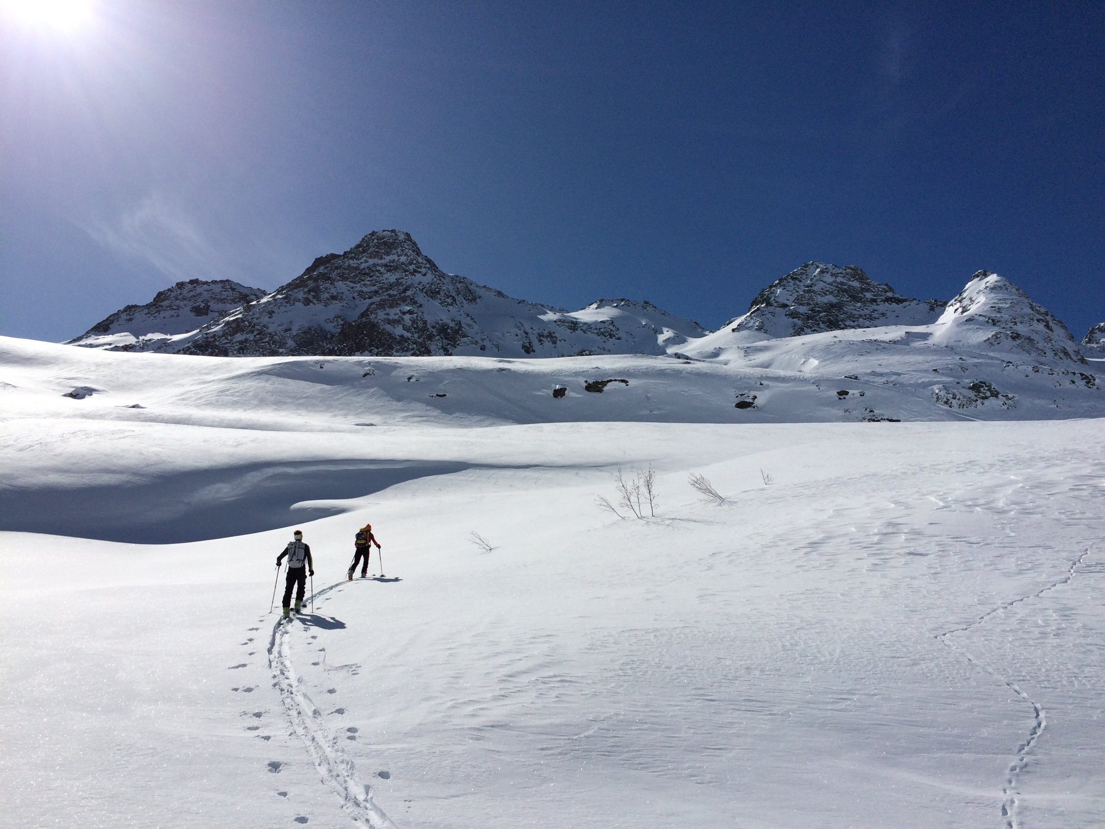 Bis zum Passo di Valdesserta bester Pulver, ab Mittelbergpass windgepresst und etwas abgeblasen, die letzten 5 Minuten zum Gipfel zu Fuss.