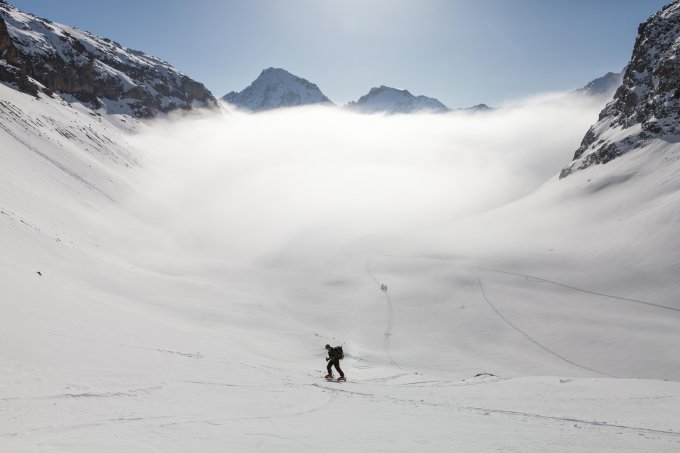 Aufstieg nicht wie im Skitourenführer beschrieben über die Mitte der Gletscherfront des Vadret d'Err sondern auf der orographisch rechten Seite des Gletschers. An Stellen mit wenig Schnee im Aufstieg öfters Steinkontakt. Gletscher weitestgehend gut eingeschneit. Schneerinne mit sehr gutem Trittschnee angetroffen. Tour wegen eher heiklen Bedingungen an den Gipfelfelsen abgebrochen. In der Abfahrt Pressschnee vom Skidepot bis zur Gletscherstirn ab dort Harschdeckel bis zur Hütte. Sorgfalt in der Abfahrt wegen möglichem Steinkontakt.
