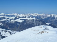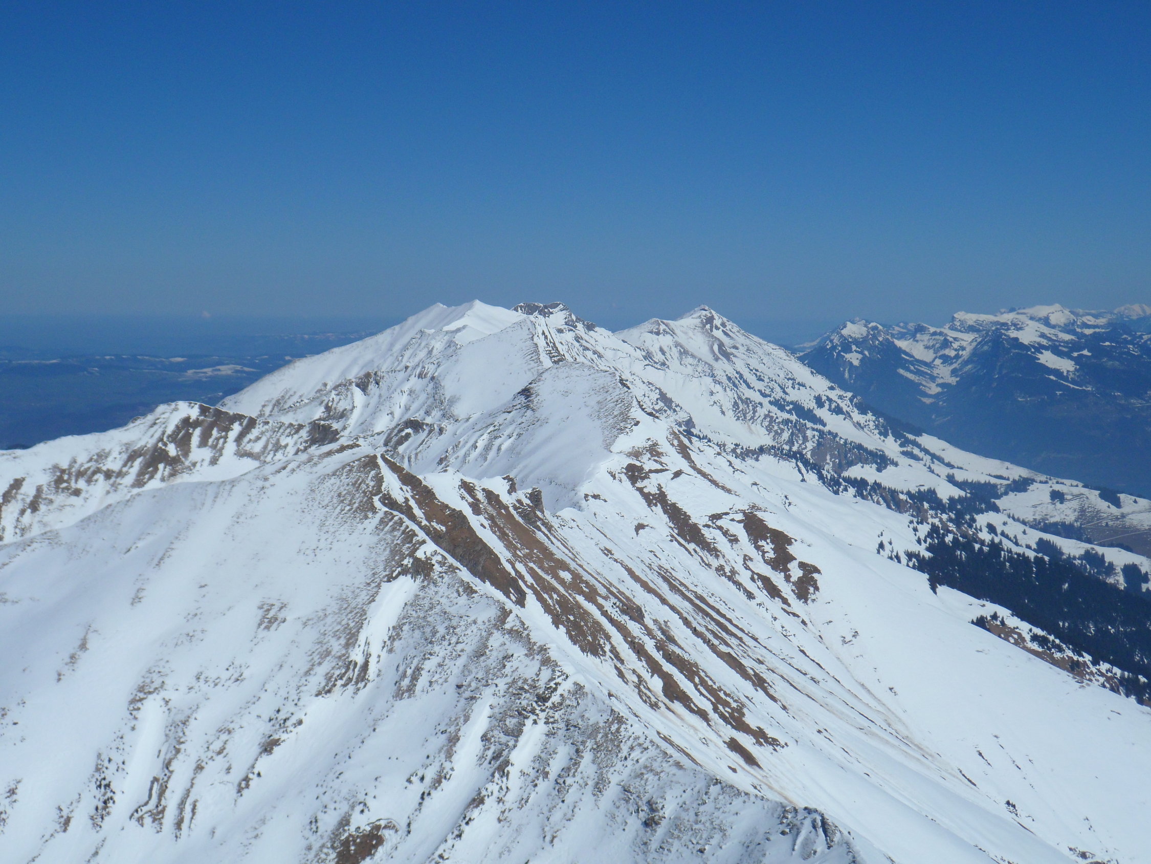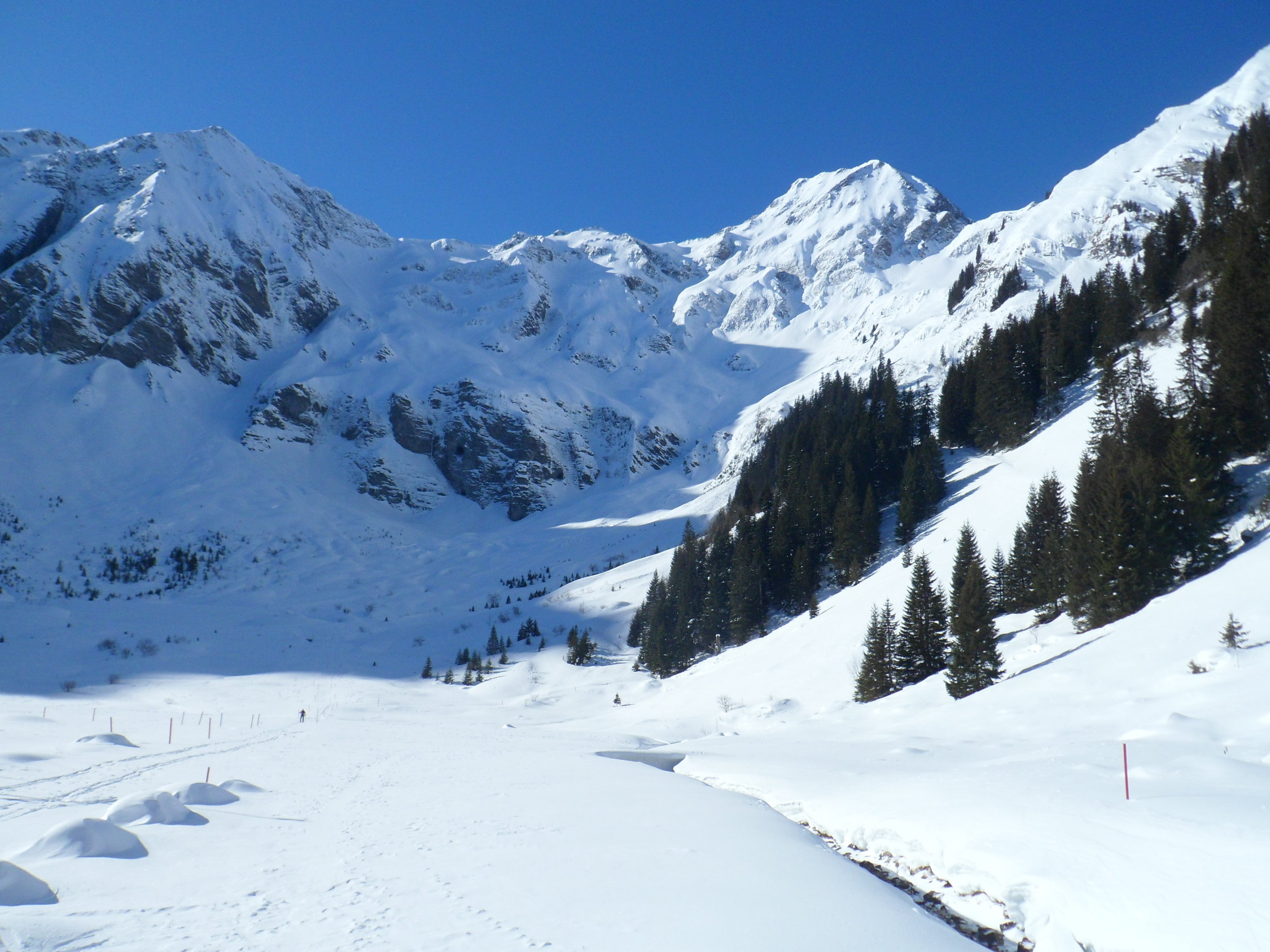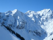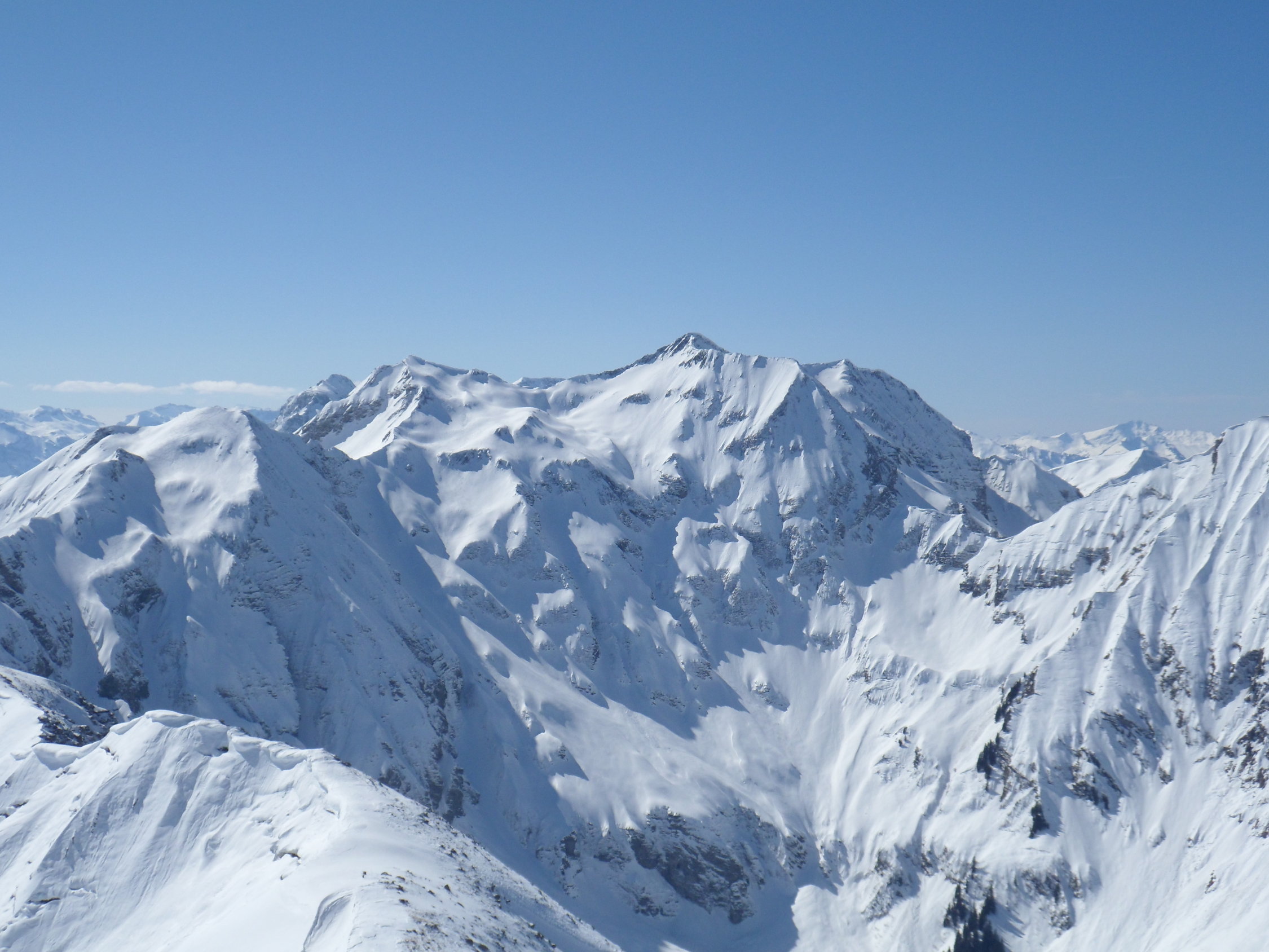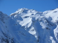 tragende Schmelzharschkruste im Laufe des Tages aufsulzend. Das Winterhorn wurde begangen mit Abfahrt nicht über den Wasserfallcouloir, sondern durch das östlichste Couloir und auch auf das Ladholzhore hatte es eine Spur vom hintersten Chirel aus.