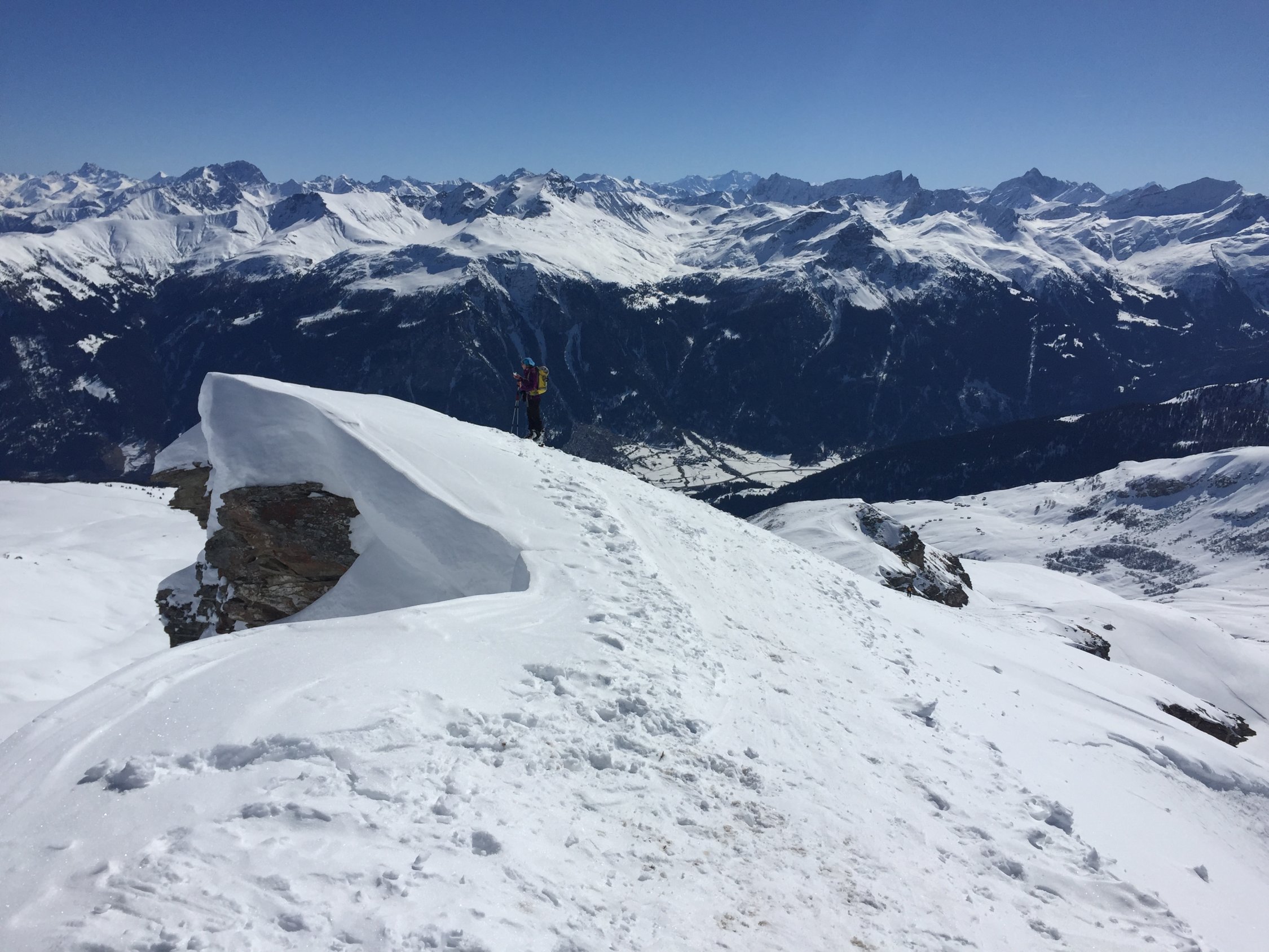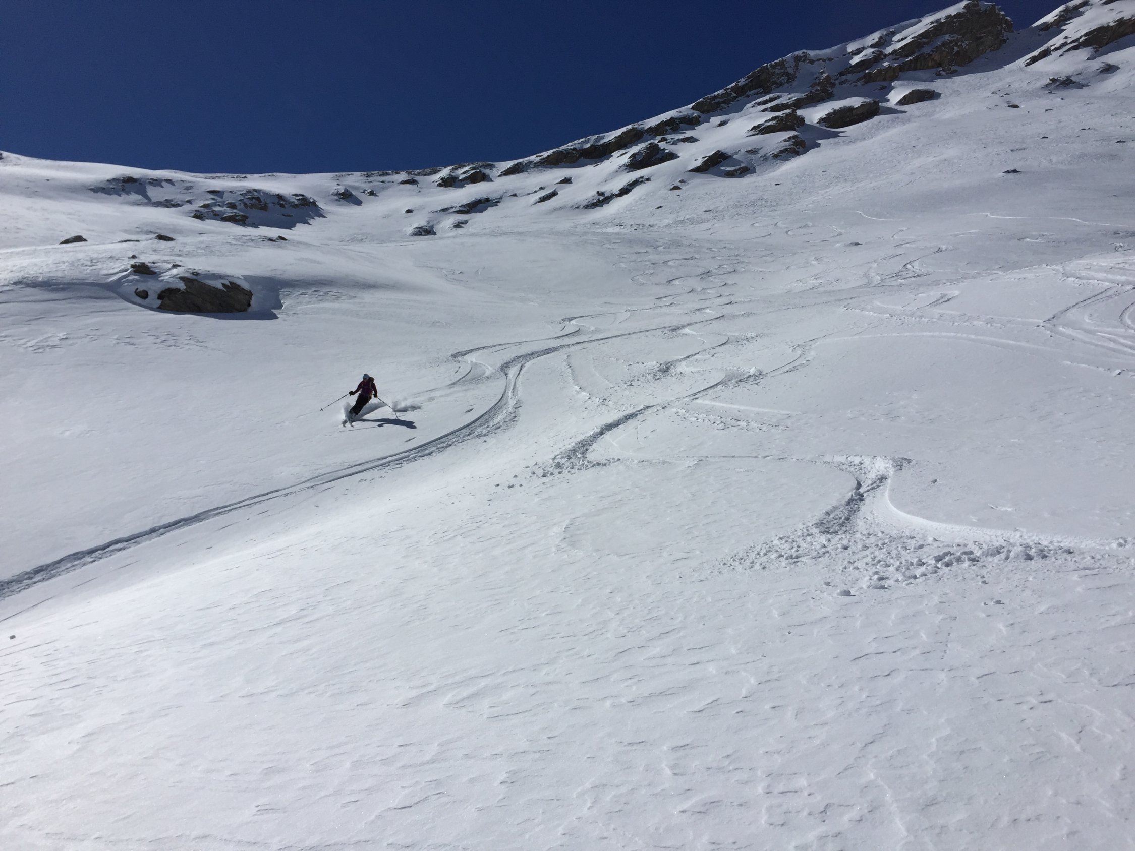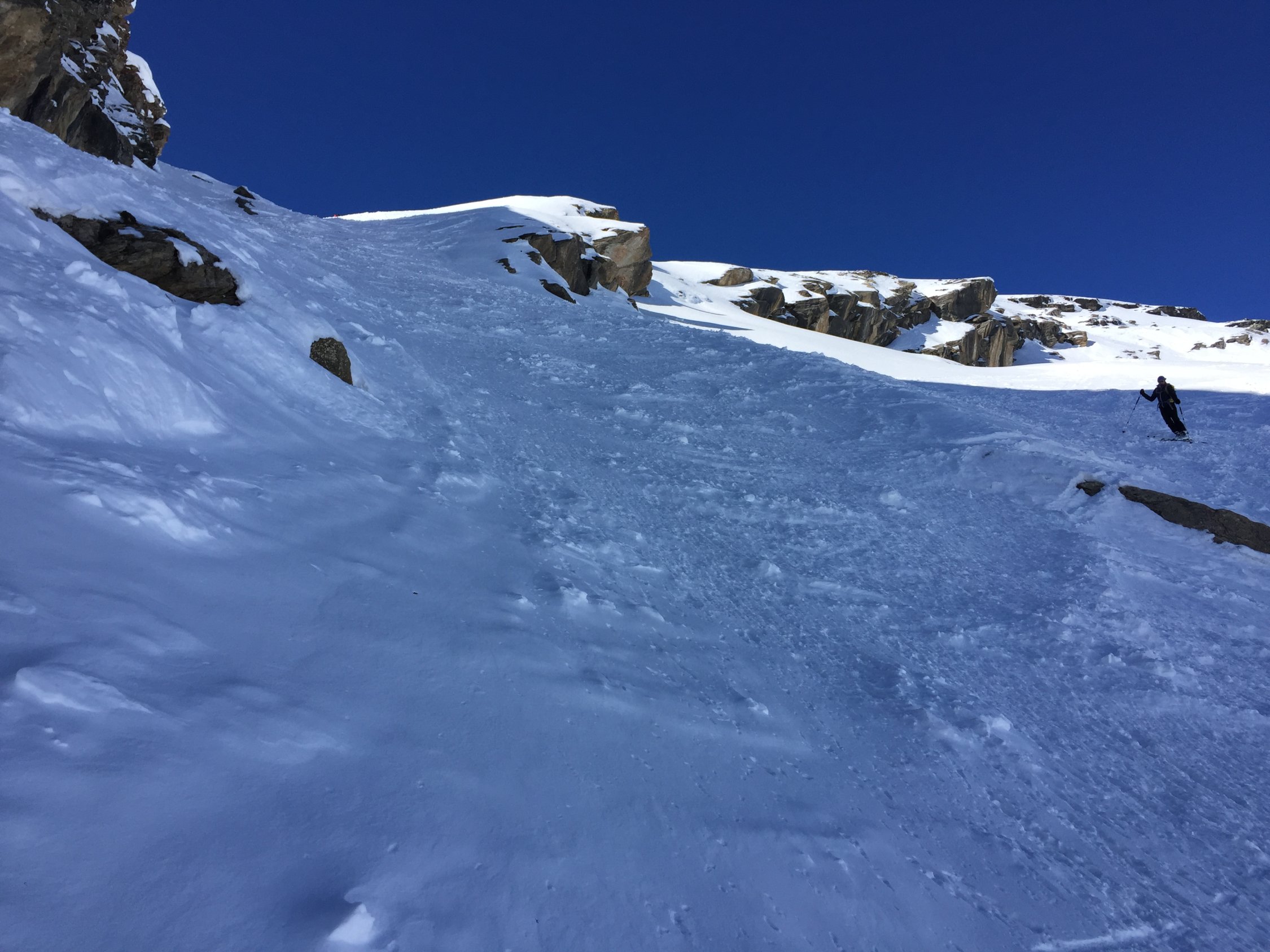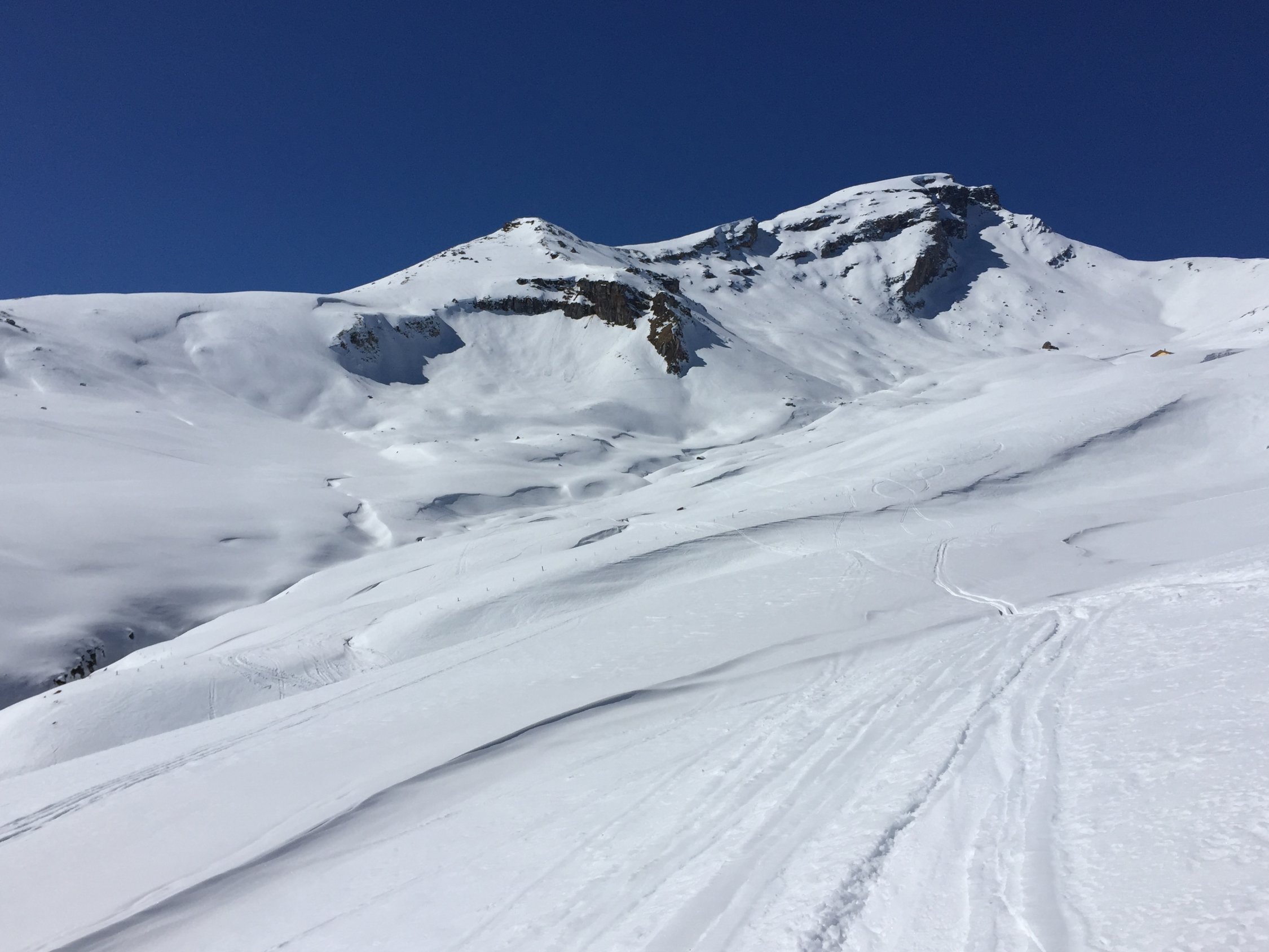 Ostseitige Abfahrt ging gut. Schnee von pulvrig über hart bis sulzig alles dabei.