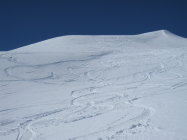 Abfahrt Erberberg. Nur drei Spuren vorhanden. Grund liegt wahrscheinlich darin, dass der Waldteil am Schluss sehr schneearm scheint. Wird dort kaum durchgehend befahrbar sein.