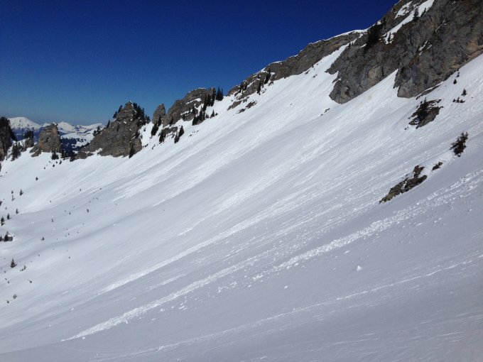 Bis zum Vehsattel tragende Schicht, zeitweise glasiger Deckel. Im Aufstieg zum Ussere Höuweggli in den Schattenhängen Pulver. Vom Heueggli einige Oberflächenrutsche aus den Felswänden. Grösserer Rutsch in der Querung Ruchtung Mieschflue. Vom Gipfel Mieschflue ist kürzlich ein Oberflächenrutsch nach NE abgegangen. Aufstieg mit Ski bis Gipfel machbar. Achtung vor den Wächten gegen das Färmeltal. Die Abfahrt ist bis zum Brückli wieder gut machbar.