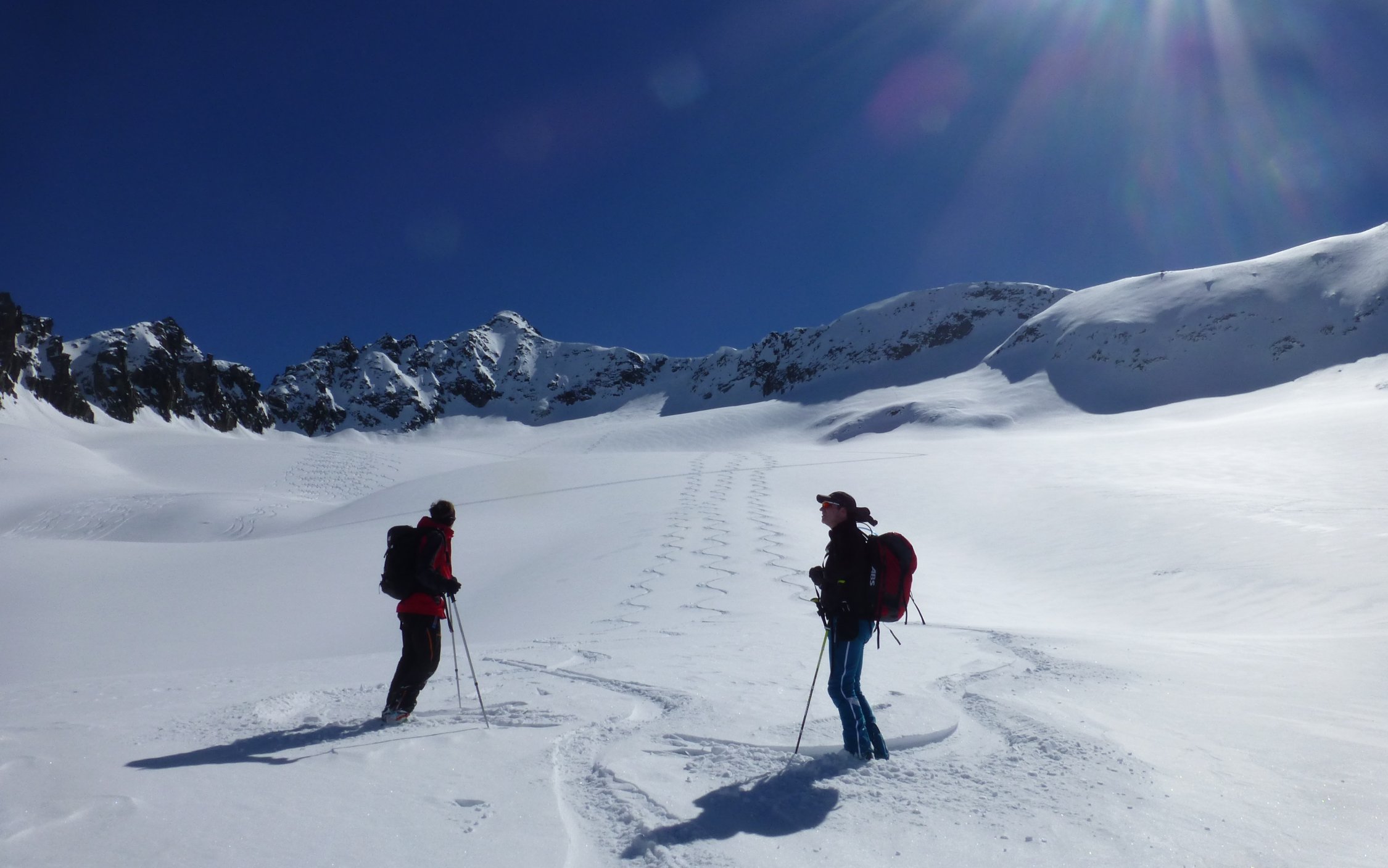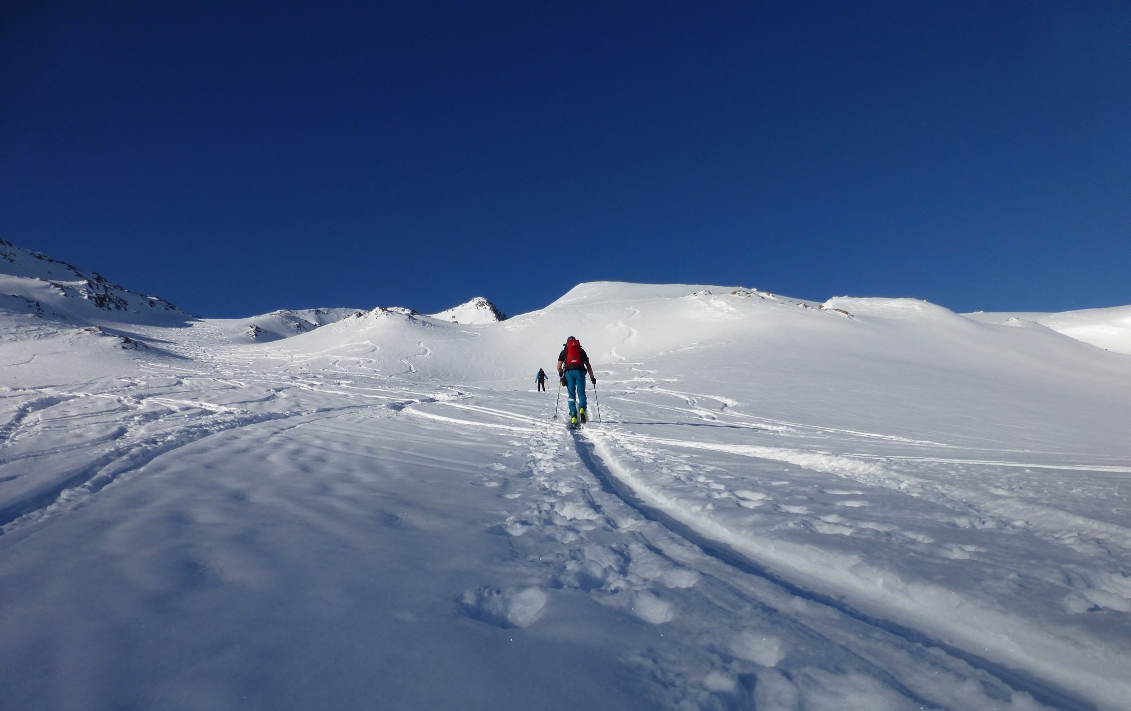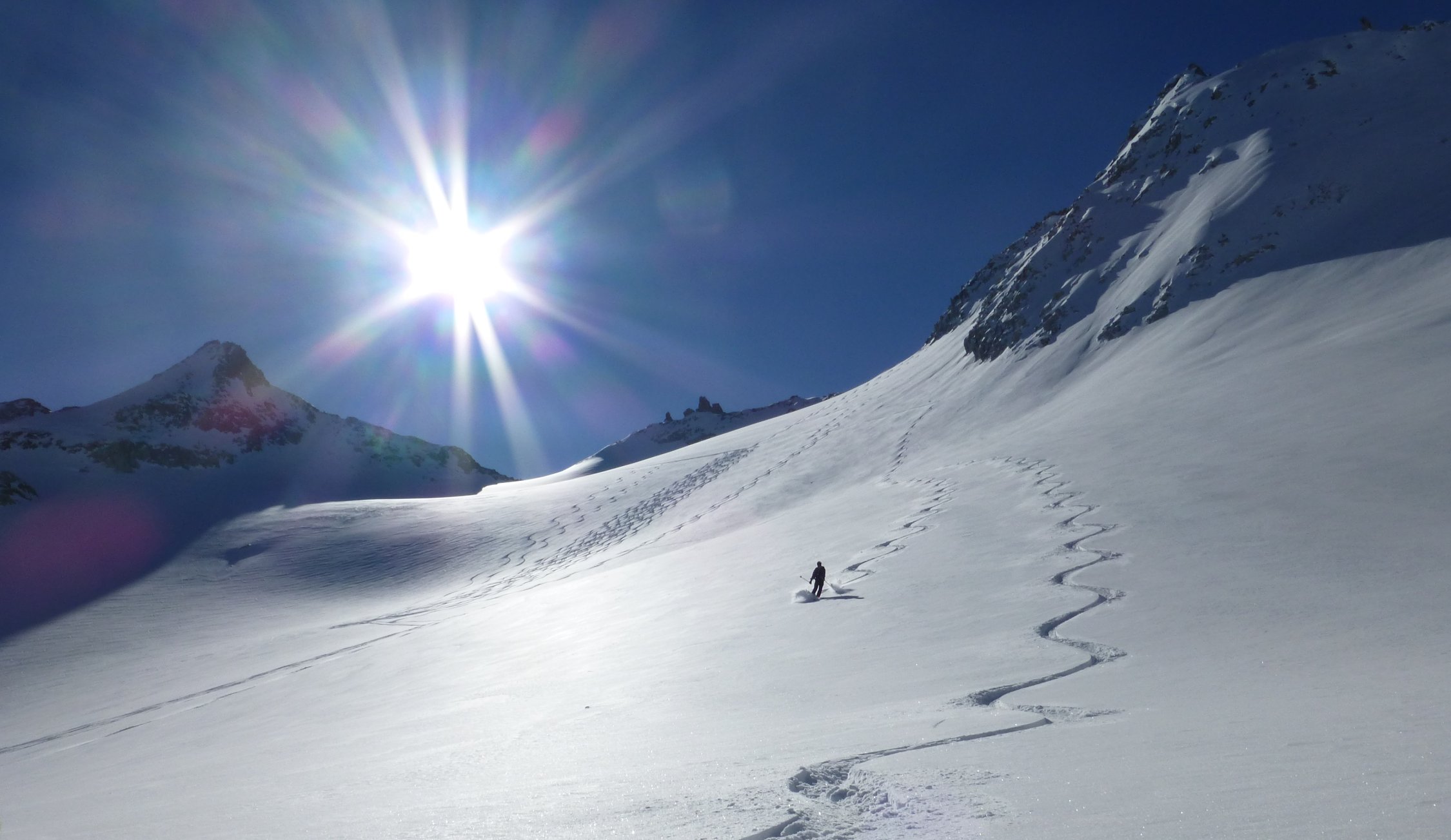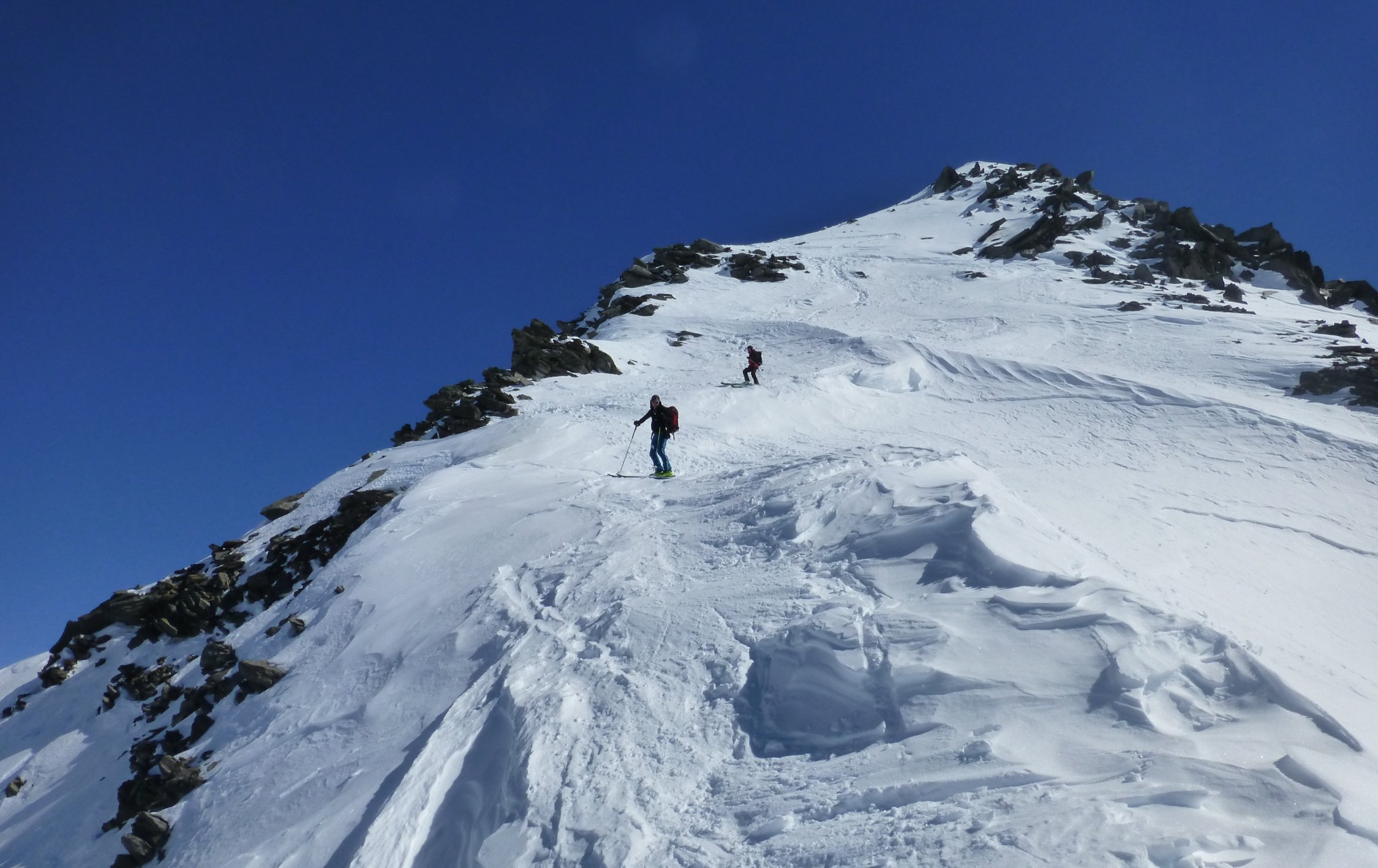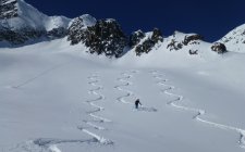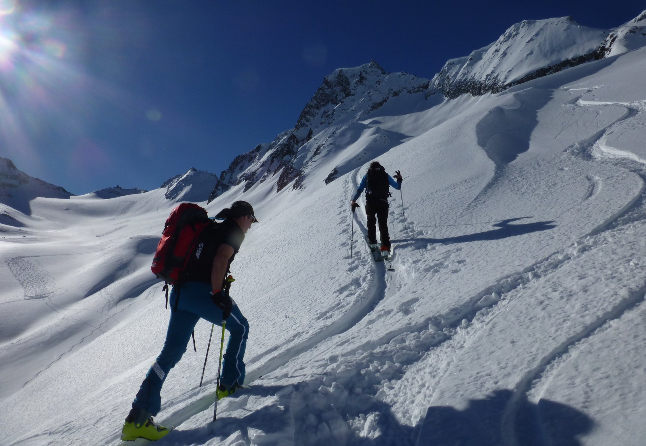 Übergang zum Leckipass teilweise Hartschnee dann Pulver bis zum Gross Muttenhorn.