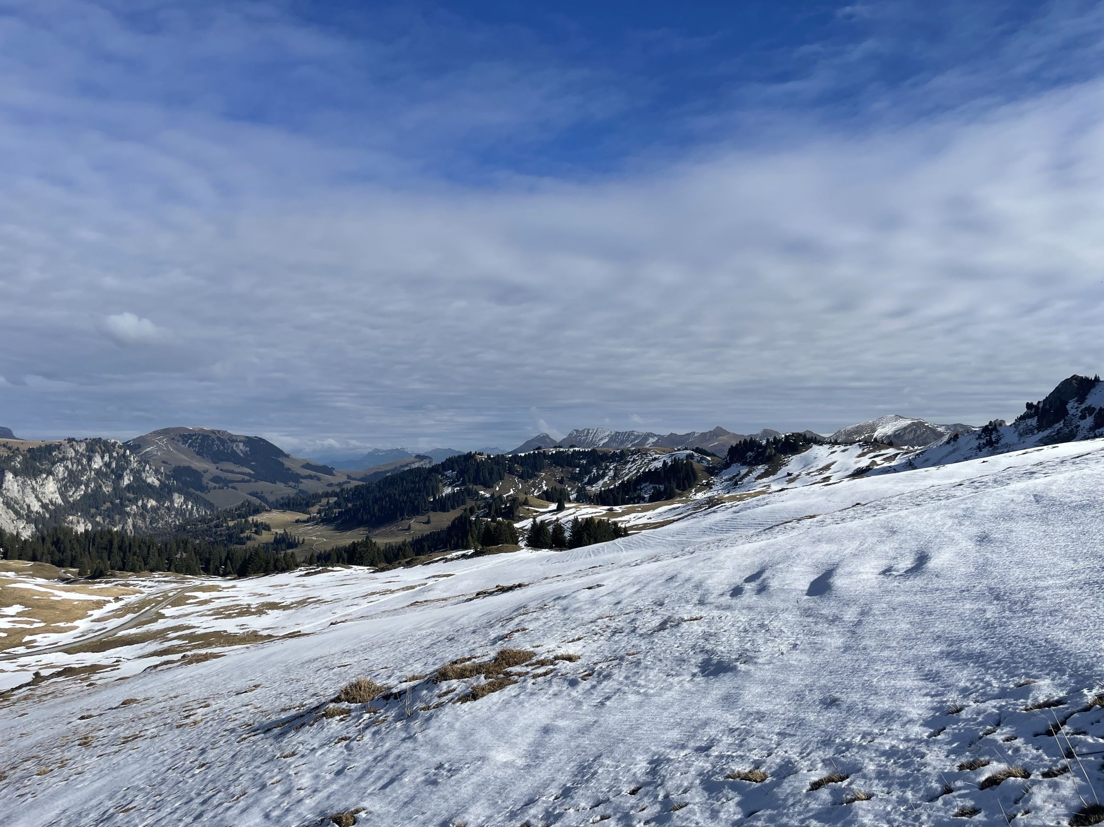 Ich bin ja im Winter oft auf dem Gestelegrat, aber immer von der anderen Seite aus, also vom Meniggrund. Daher wollte ich heute mal diesen Weg aus dem Simmental kennenlernen. Er ist angenehm direkt, man macht flott Höhe, oder anders gesagt, es ist deutlich steiler als von der anderen Seite. Wetter meist sonnig, Temperatur für November angenehm. Die obersten 30 Meter musste ich sein lassen, dort Pulverschnee gut, das passte nicht zu meinen Turnschuhen, äh: Trailrunner heissen die ja heute. Henu, in einem Monat komme ich mit den Skis wieder.