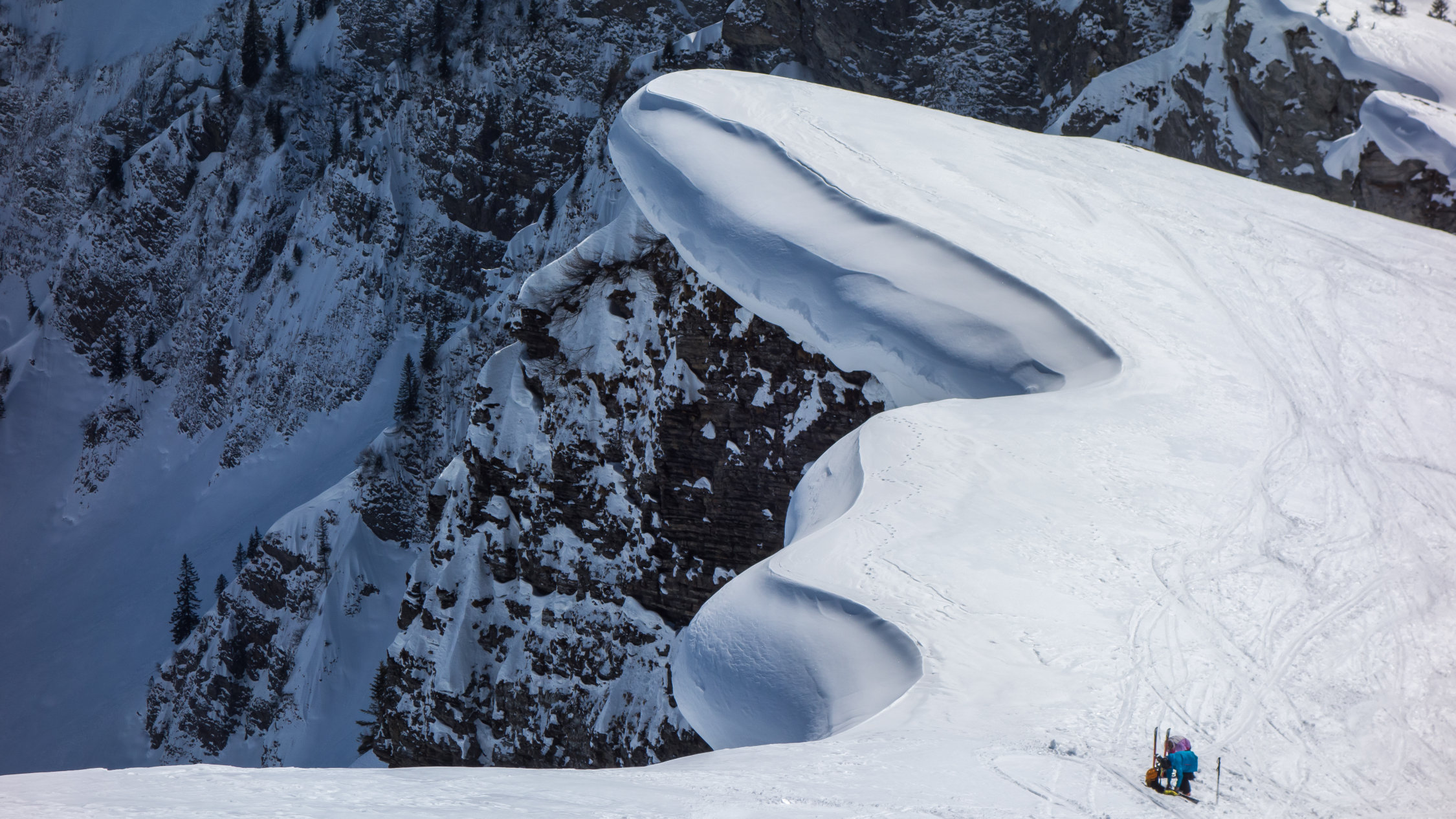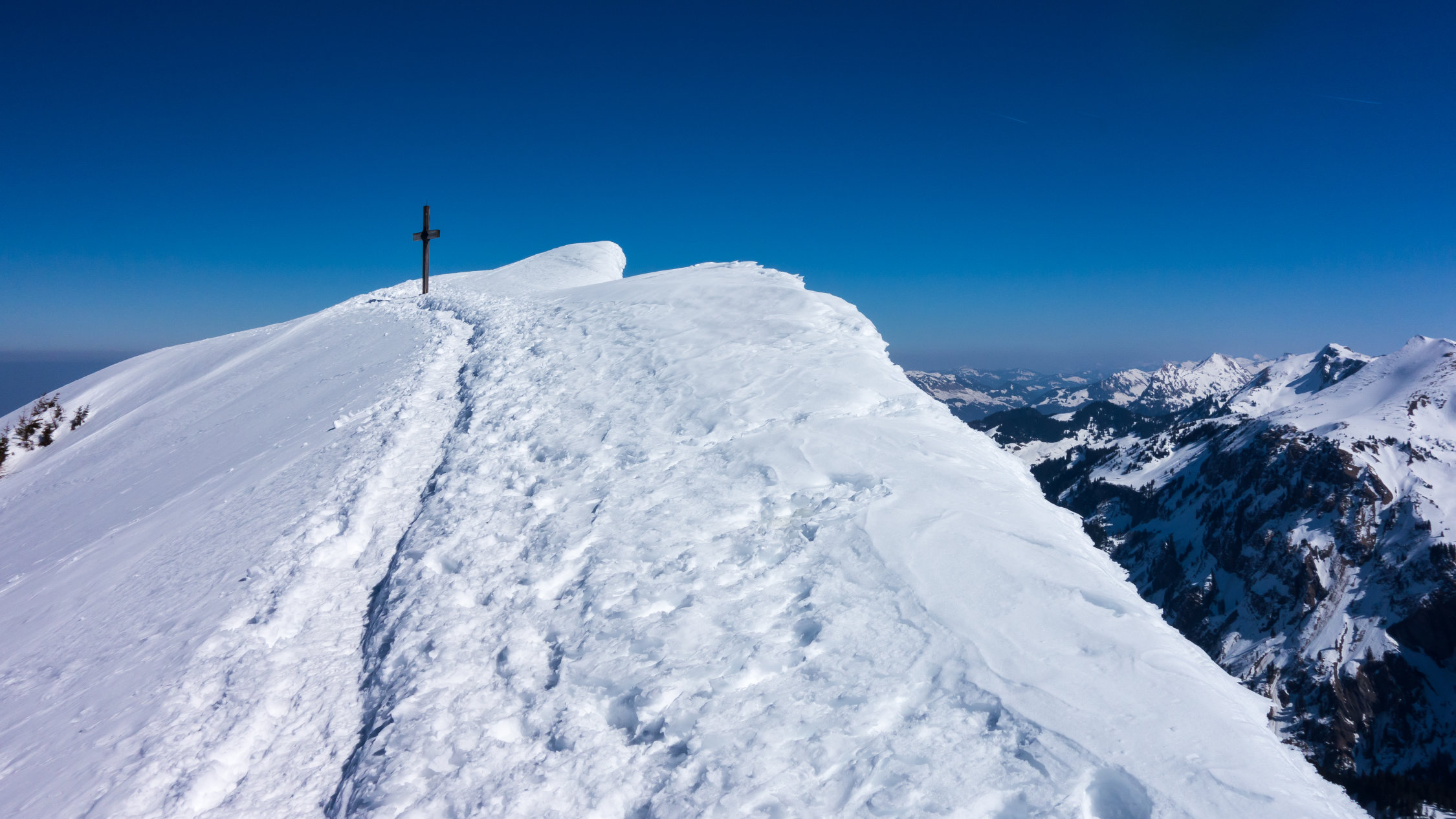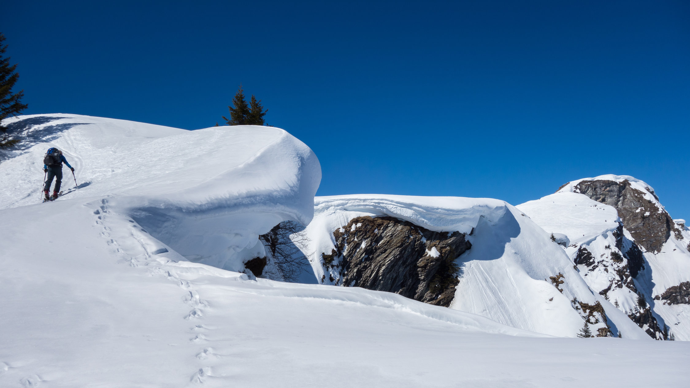 Bilderbuchtag! Viel Schnee in der Gegend. Der Grossteil der Tour befindet sich an Südhängen, im oberen Teil wunderschöner Sulzschnee. Unten im Wald dann stark zerfahren, eher wie eine Piste.