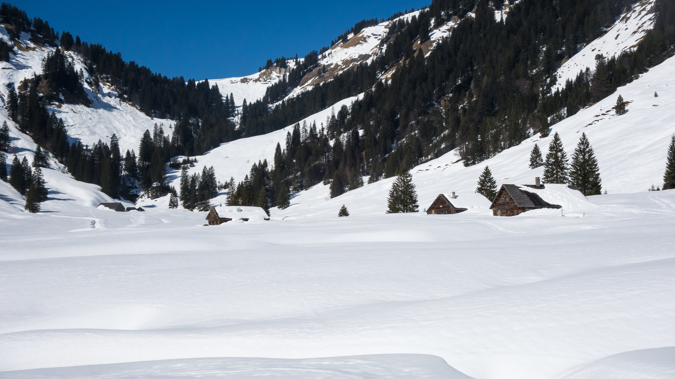 Zur Abwechslung ein Abstecher zu den "Vorarlberger Freunden". Eine wunderschöne, idyllische Gegend und über der Waldgrenze schönes offenes Tourengelände mit Ausblicken wie auf einem 3000er. Die Tour ist sehr einfach und eignet sich auch gut für Einsteiger.