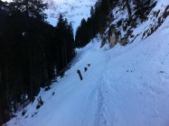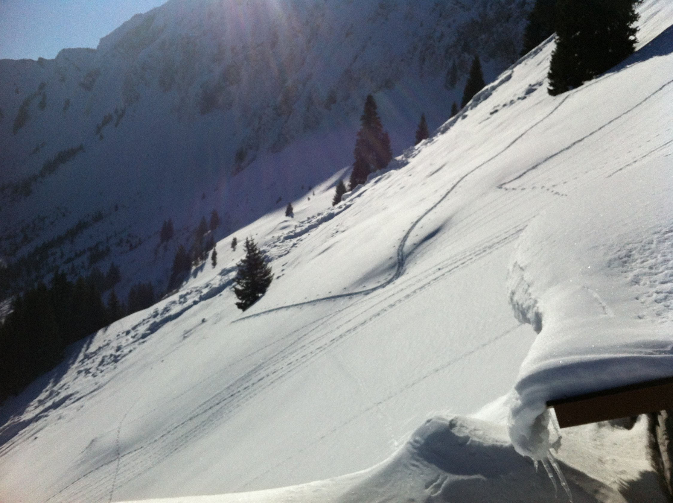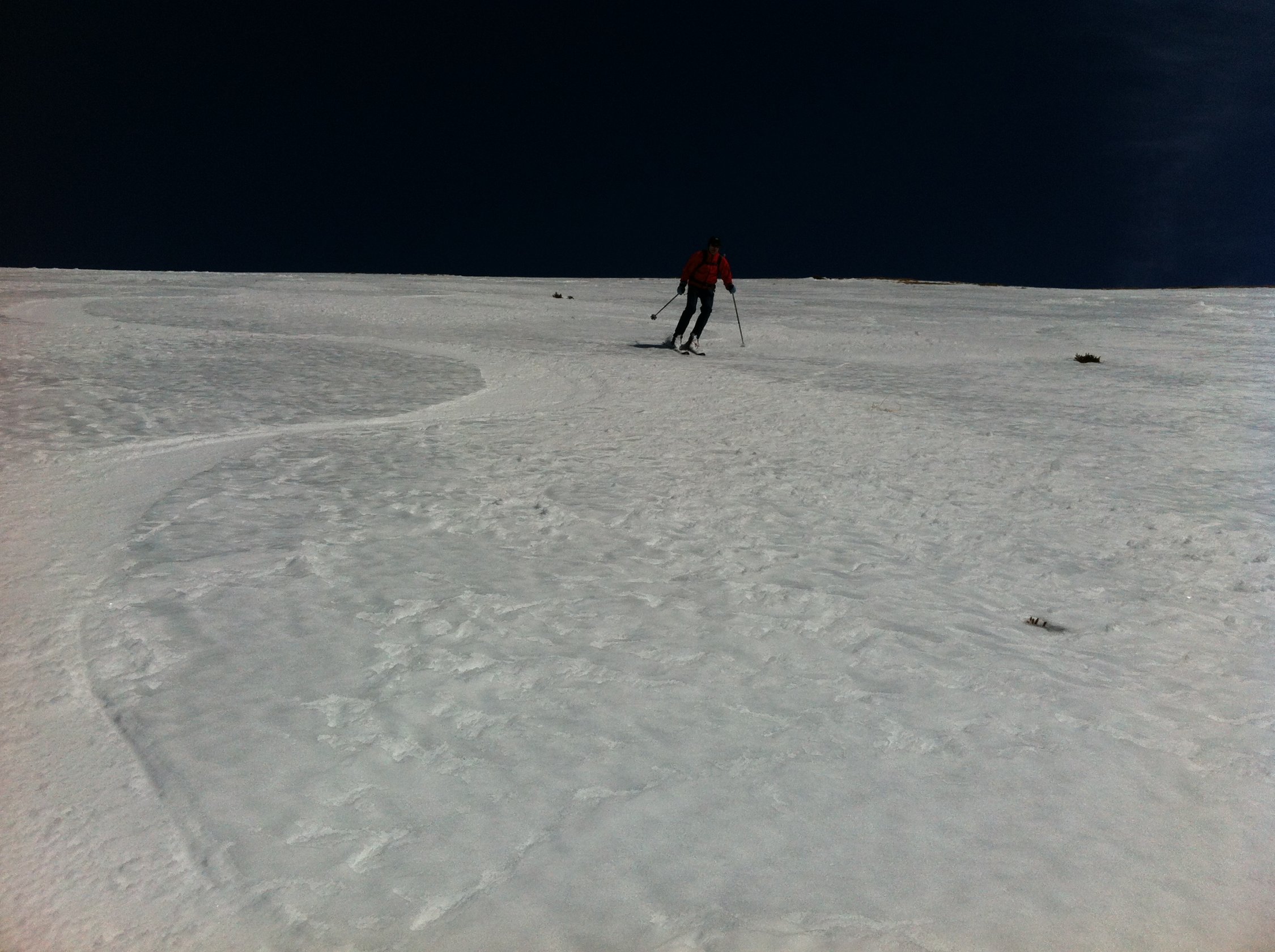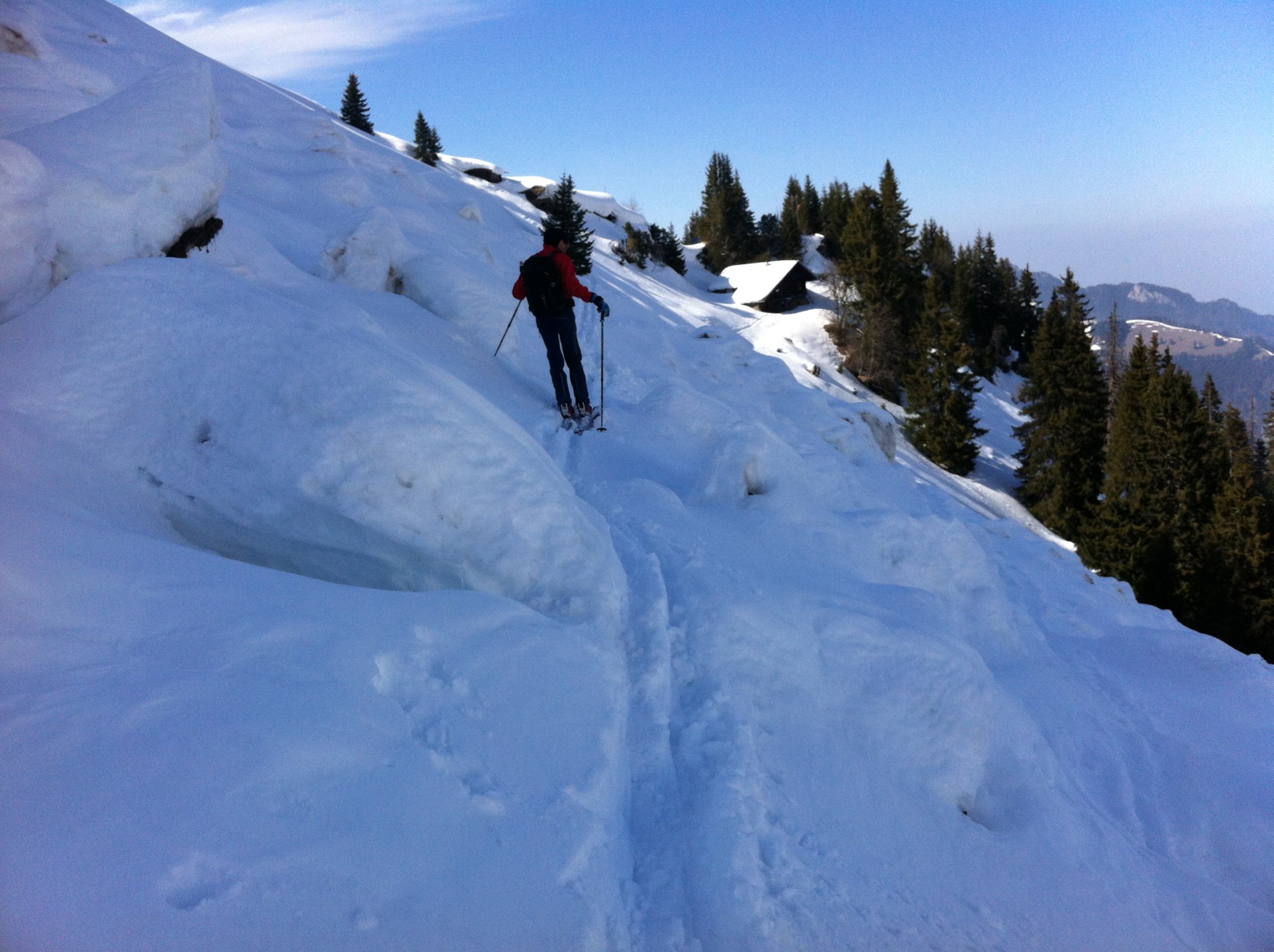 Die Chummli Querung hat im vorderen Teil grosse alte Nassschneerutsche, welche man queren muss.