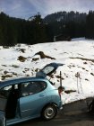 Die Ski konnten wir bis auf den Gipfel nehmen; allerdings wird die Umgebung des Hotels bereits mit Schneefräsen vorbereitet.