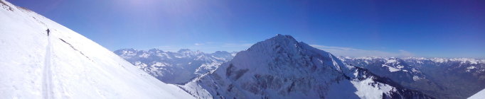 Aufstieg und Abfahrt via Chummli. Der Aufstieg erfolgte mehrheitlich auf tragendem und griffigen Firn ohne Harsteisen.