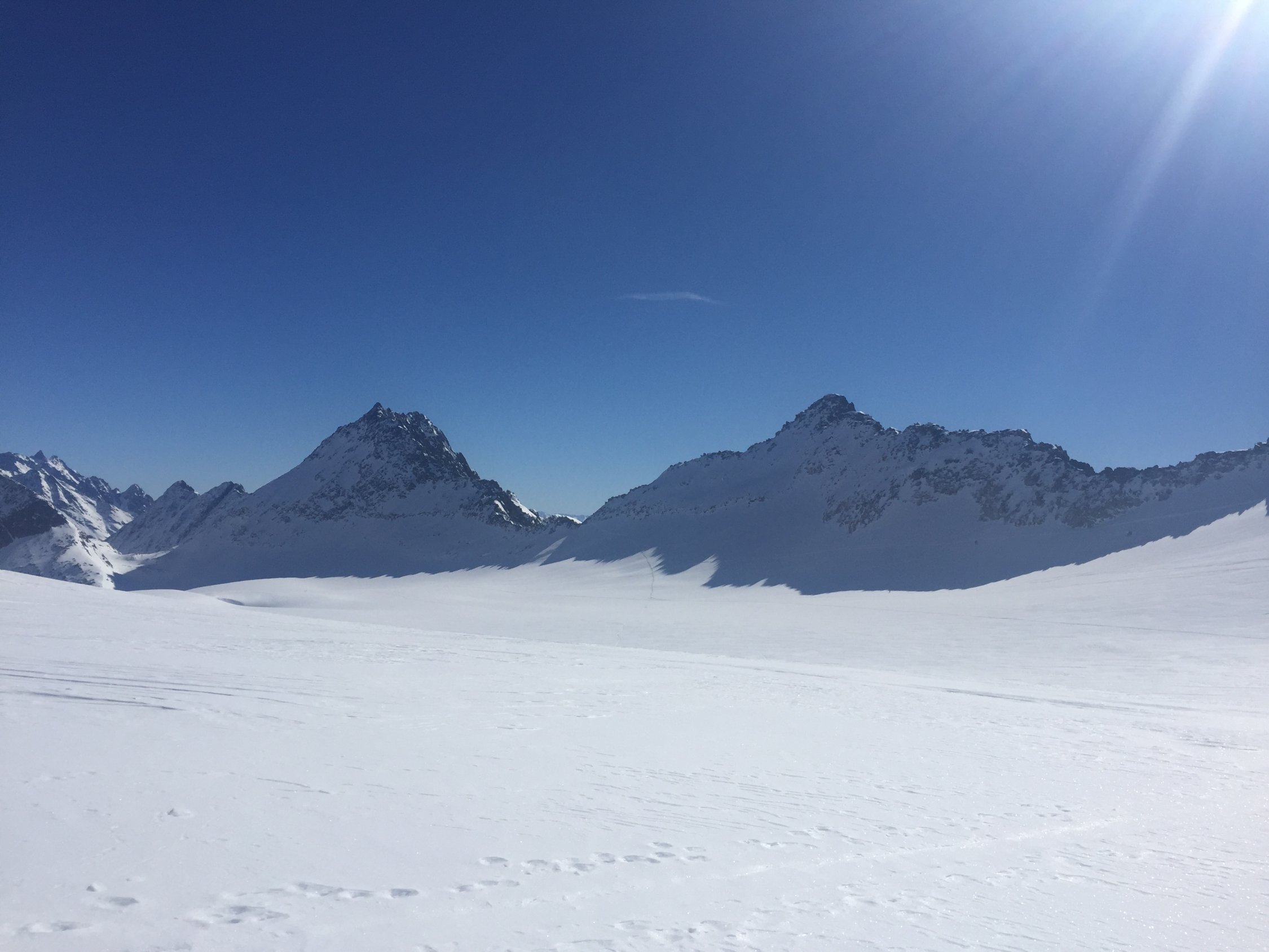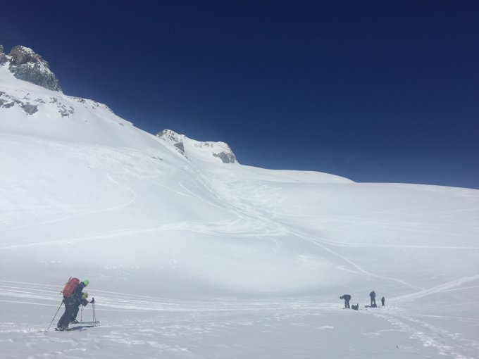 am bocki mit dem sommerweg ums eck. ab stäubern dem sommerweg nach. steil und kurz ski tragen bis zu einer fahrbaren rinne zum chärstelenbach. die stöckelei im madeandertal nimmt einige zeit in anspruch.