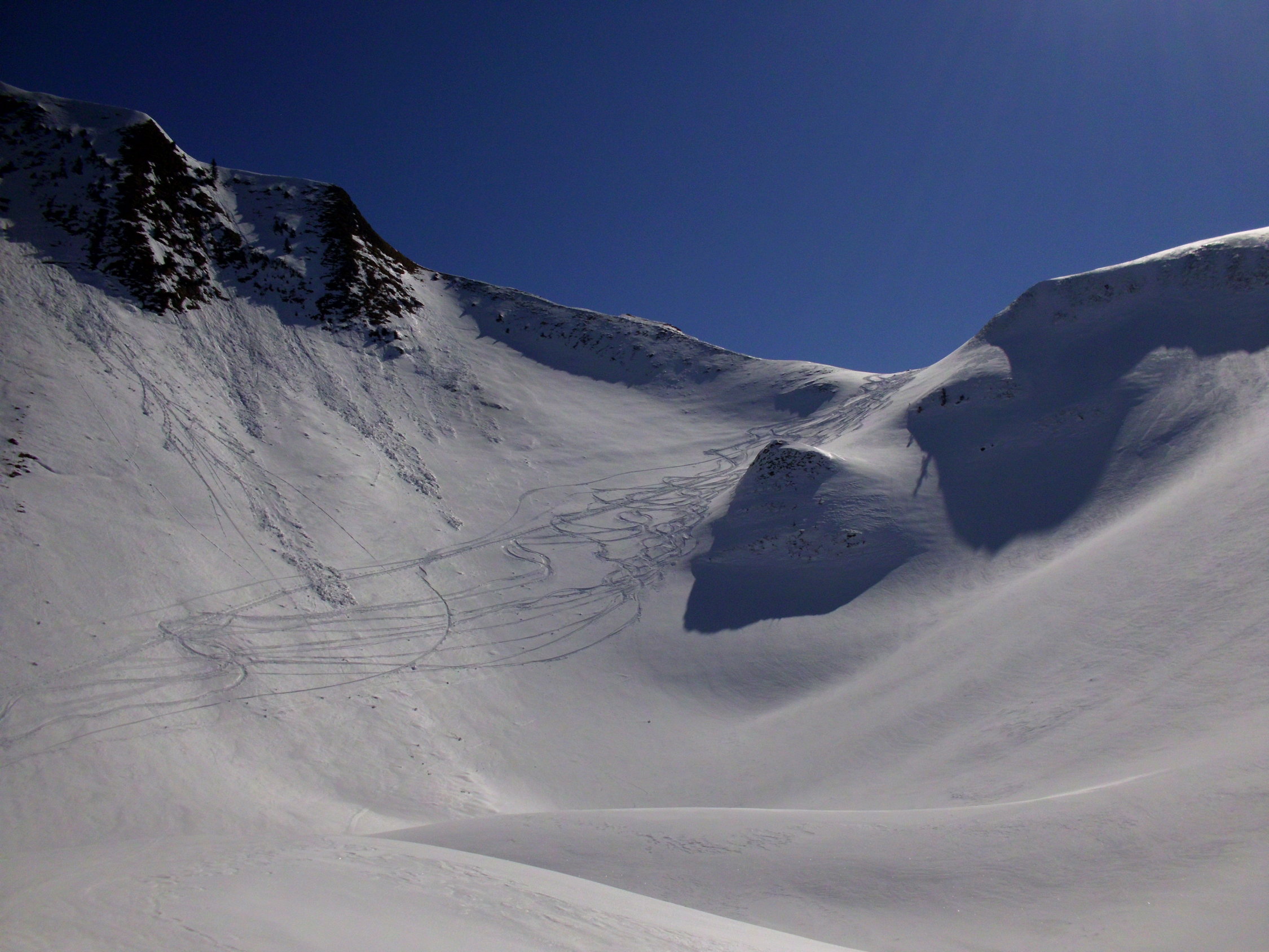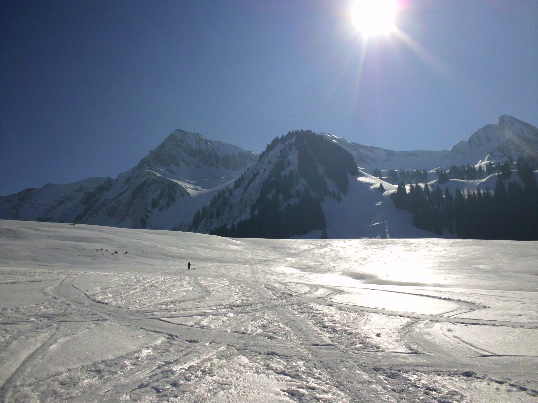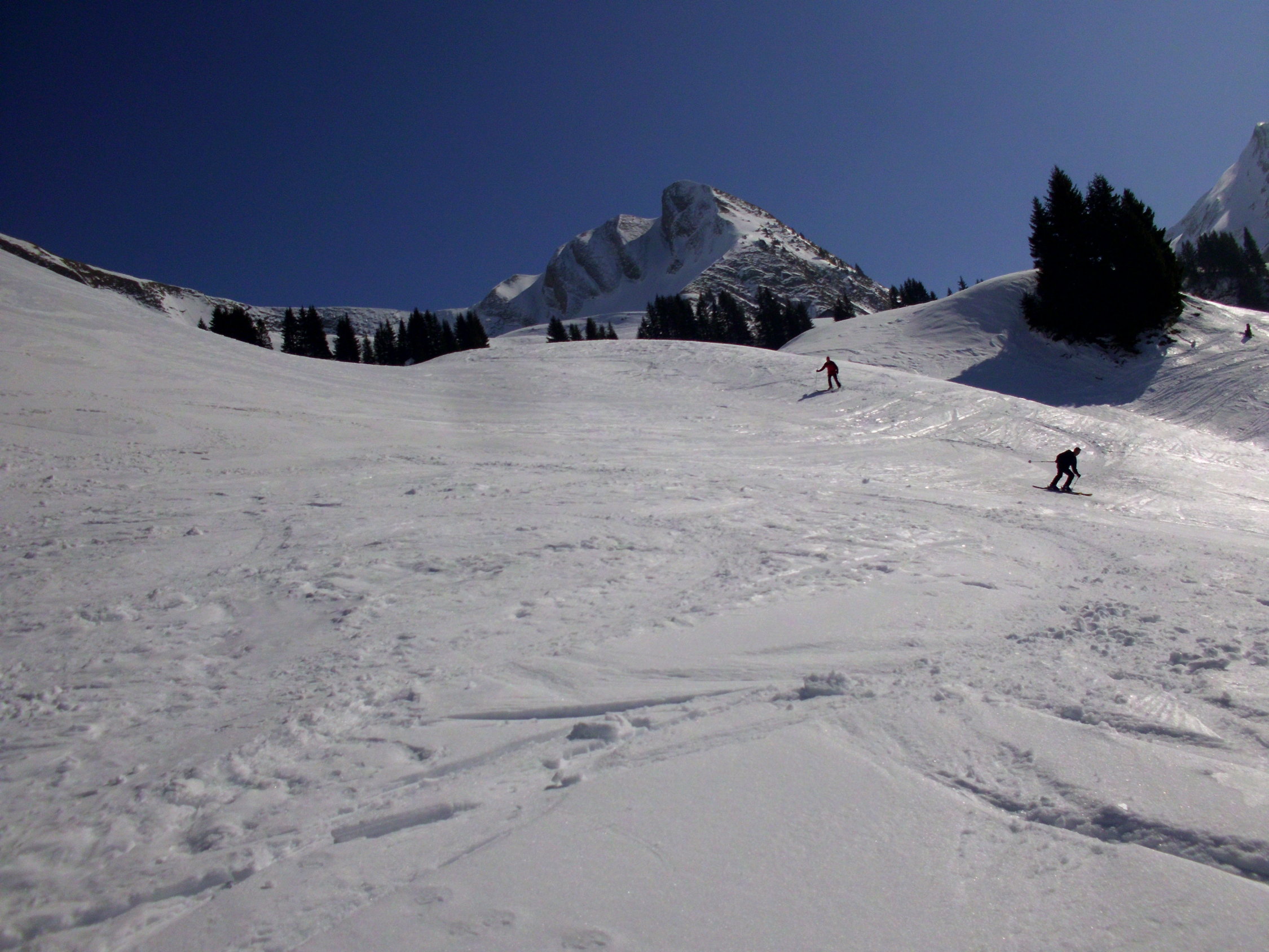 Von unten weg gute Verhältnisse, ganze Route sehr gut eingeschneit.