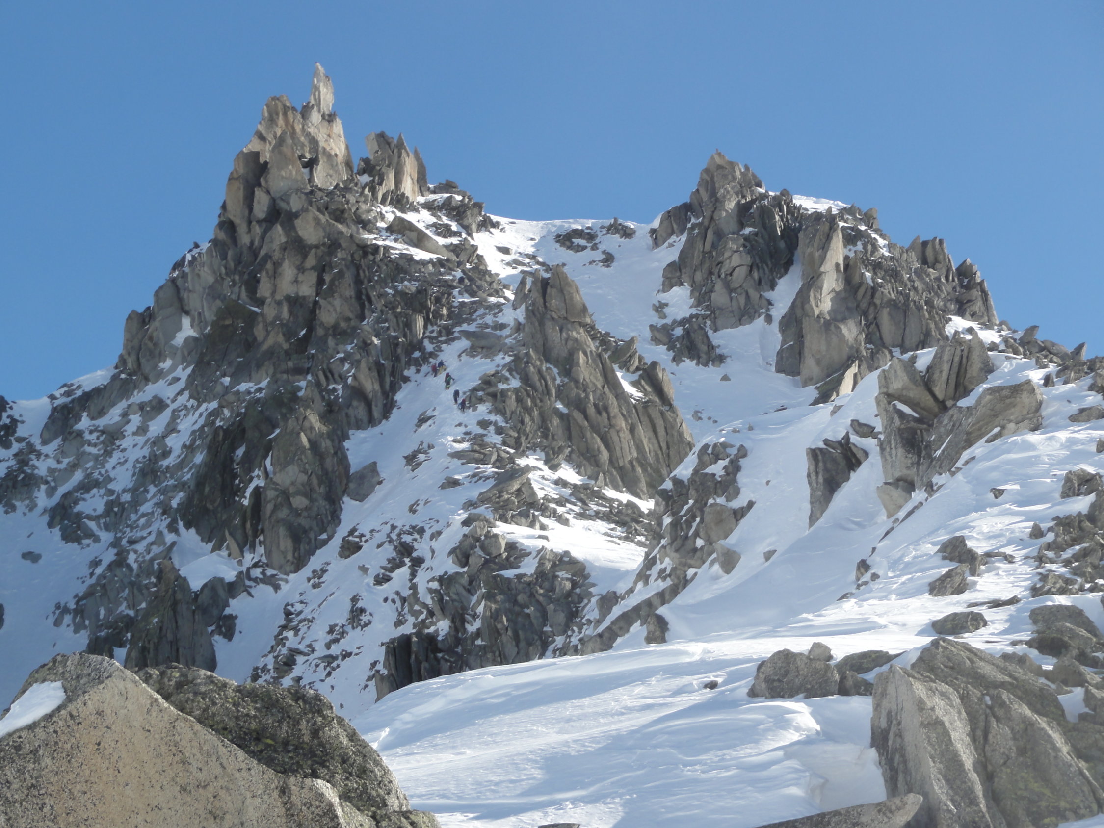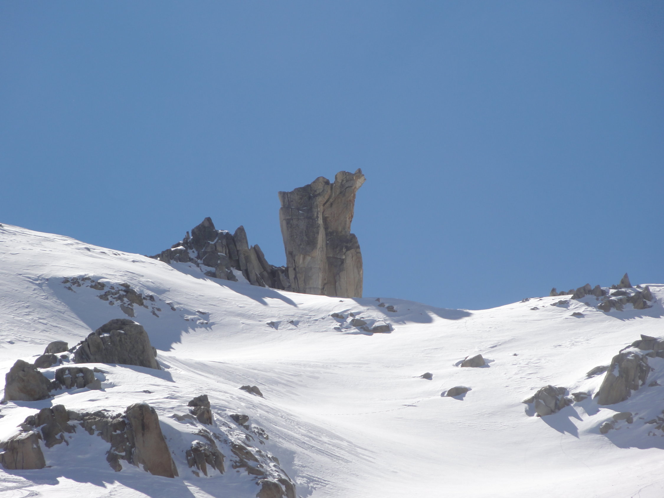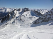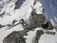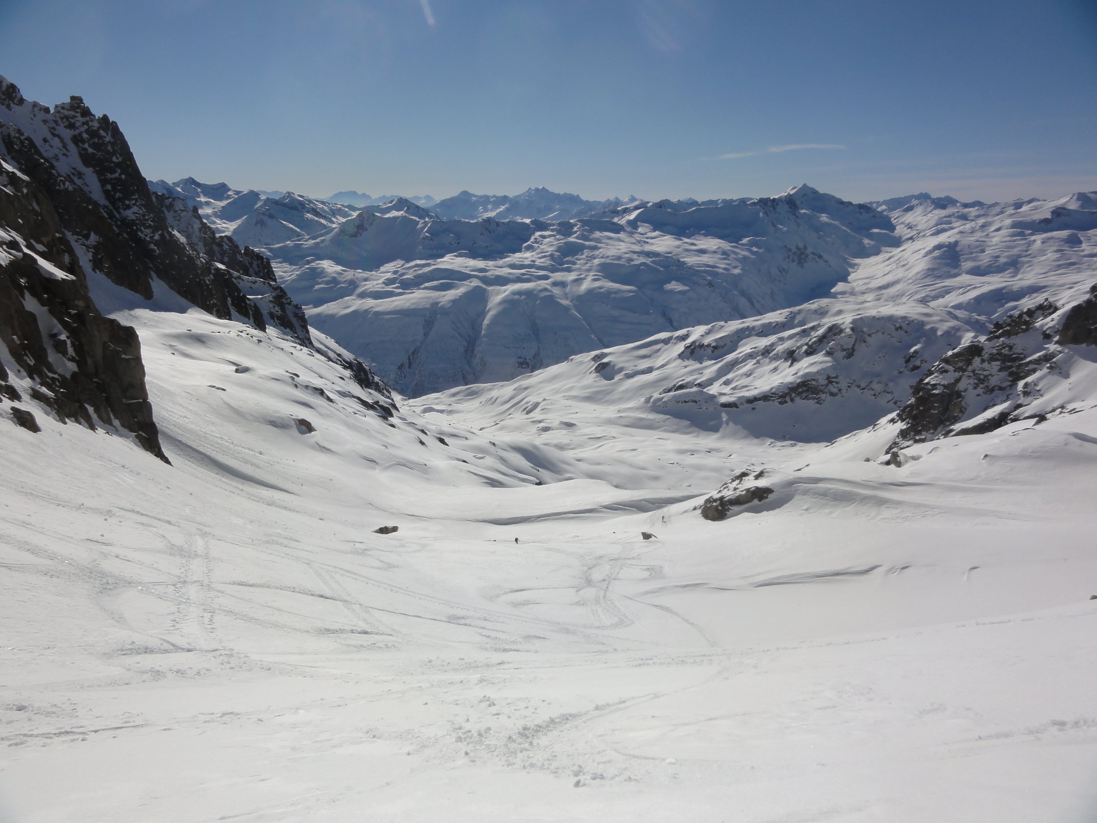Das Couloir enthält besten Trittschnee. Teilweise sind die Steinblöcke noch mit Neuschnee bedeckt, aber im generellen herrschen ausgezeichnete Bedingungen um vom Fuss des Couloirs auf den Lochberg zu steigen. Pickel und Steigeisen sind derzeit nicht erforderlich.
