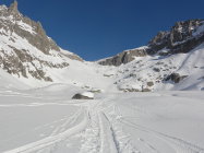 Wir sind am 19.03. in Realp gestartet und sind zum Chli Bielenhorn gestiegen. Anschliessend haben wir in der Albert-Heim Hütte übernachtet. Am 20.03. dann von der Albert-Heim Hütte die kurze Abfahrt zu den Felsen runter gefahren und die Rampe bis zur Winterlücke hoch. Bis zum Skidepot kann man über beide Tage gesehen von frühlingshaften Verhältnissen sprechen. Am Vormittag ist die Spur gefroren und teilweise rutschig. Schon im Verlauf des Vormittags wird sie sie weich und feucht.