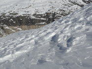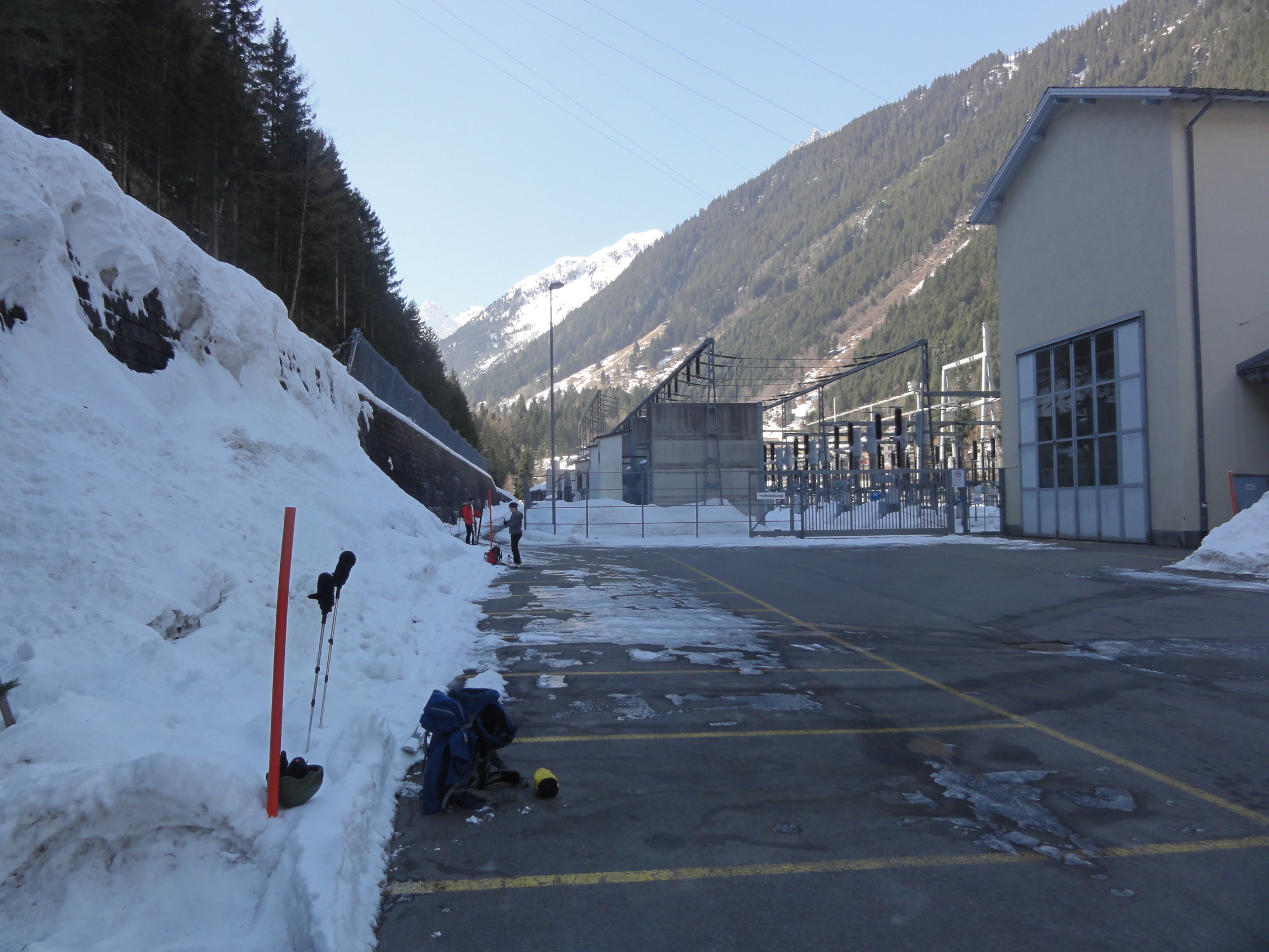 Die Abfahrt gegen die Göscheneneralp ist derzeit durchzogen. Der oberste Hang besteht aus reinem Pulver. Schon vor dem Älprigensee hat der Schnee einen Winddeckel, der noch nicht tragend ist. Im Übergang zur nächsten Rampe schmücken kleine Zastrugis die Weiterfahrt. Dann folgt bis zum Staudamm runter ein harter Winddeckel, der glücklicherweise tragend ist. Nach dem Staudamm hat es bis Abfrutt Schnee auf der Strasse. Nach dem Mittag meist Sulz, klebend (heute zudem Gegenwind). Nach Abfrutt kann man auf der rechten Seite der Göschenerreuss bis zur Kraftwerkszentrale in Göschenen weiterfahren.