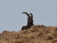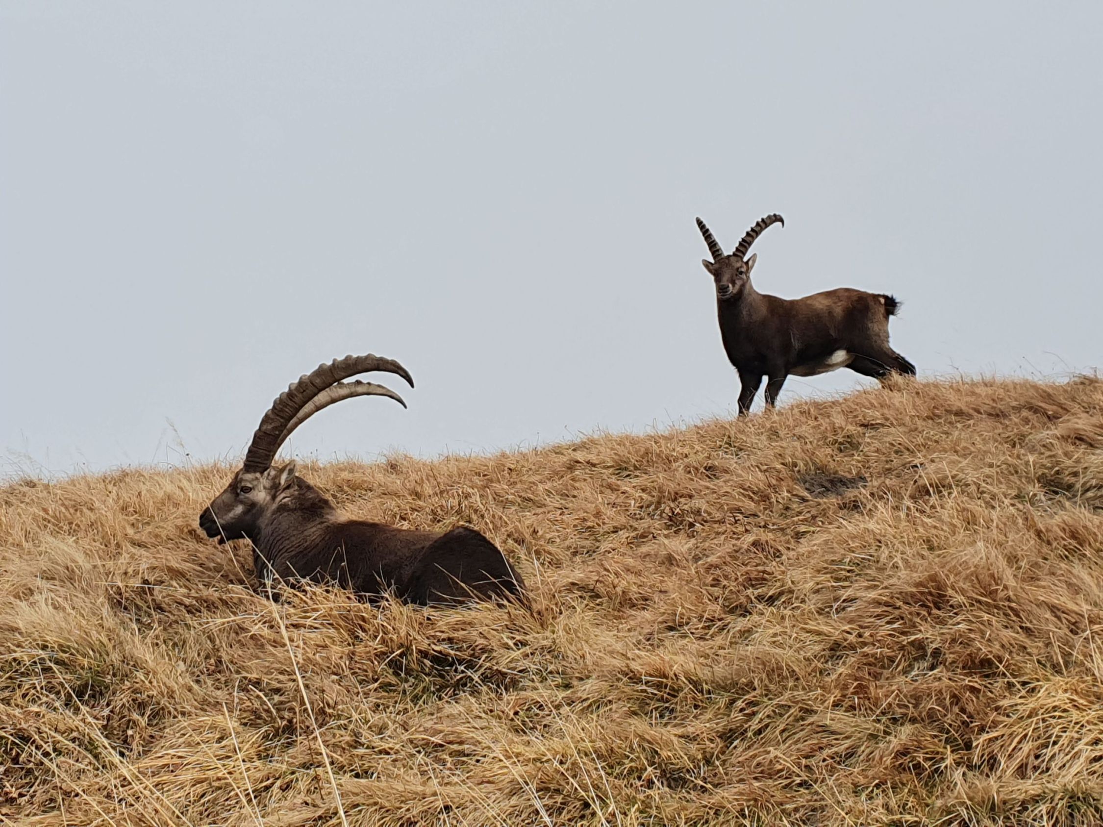 Dort mehrere Steinböcke auf Wanderweg am chillen. Teils etwas schnee und nass auf Wanderweg.