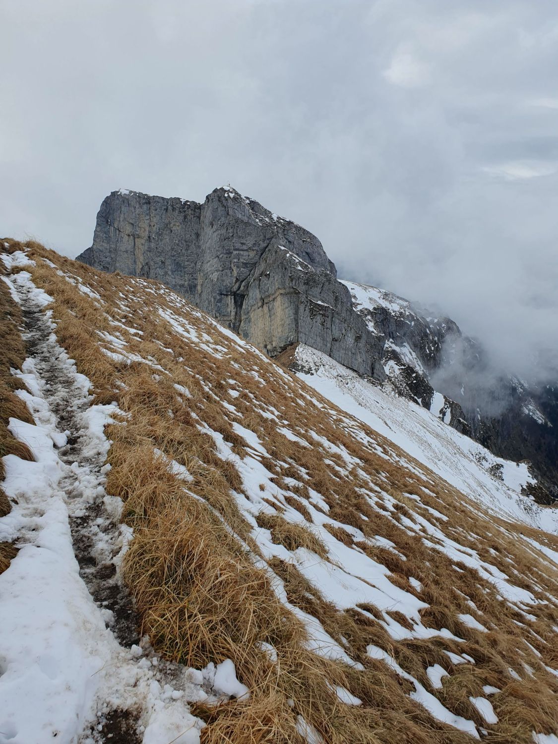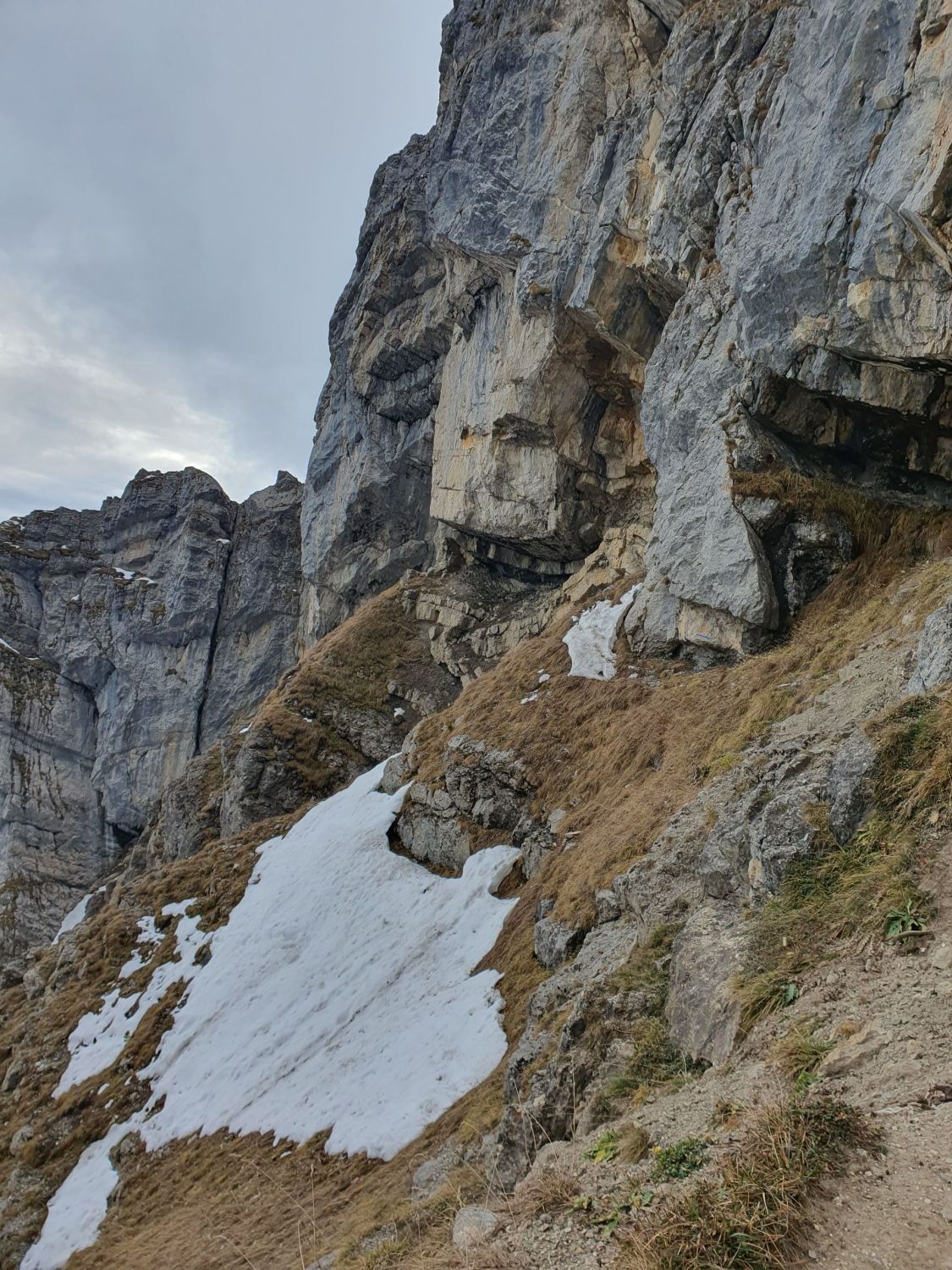 Druchs Stollenloch und dann direkt via steile Grashänge und Gschüder direkt auf Birchboden, da Wetter nicht mehr so stabil. Gut zu gehen und mit vielen Markierungen versehen. Trocken.