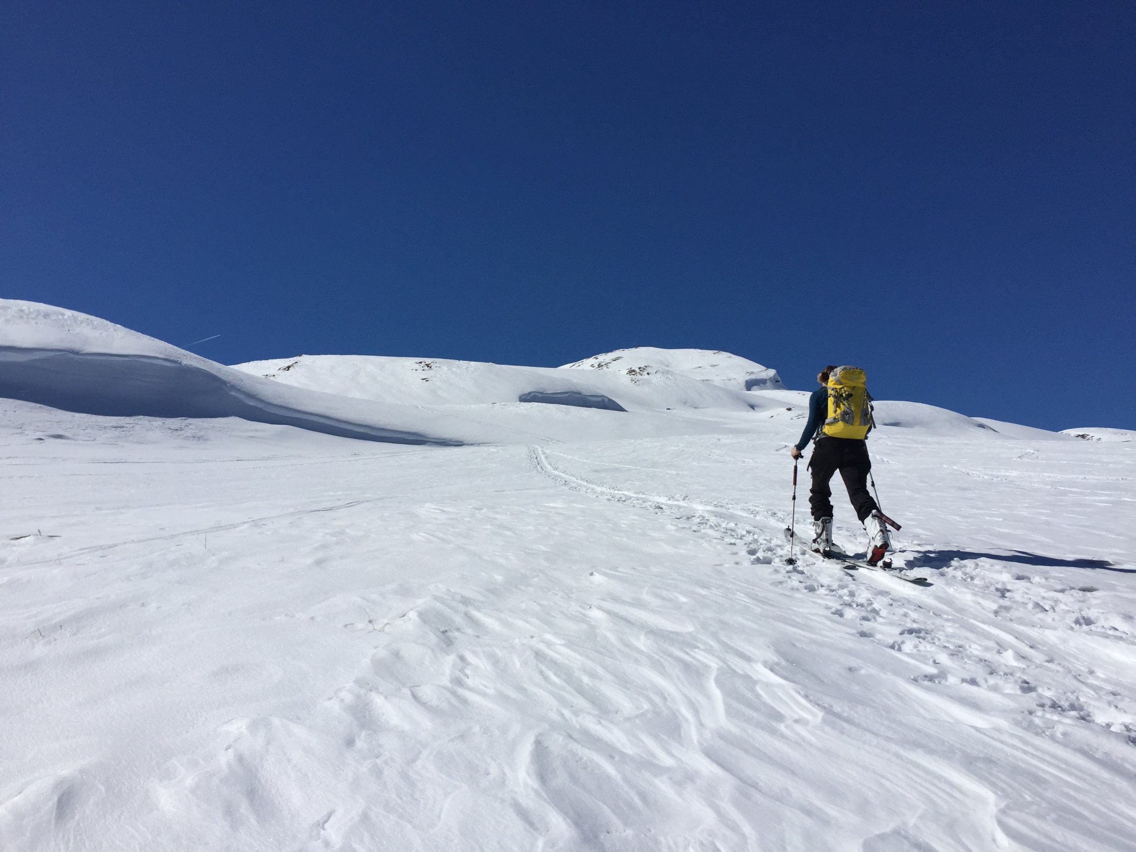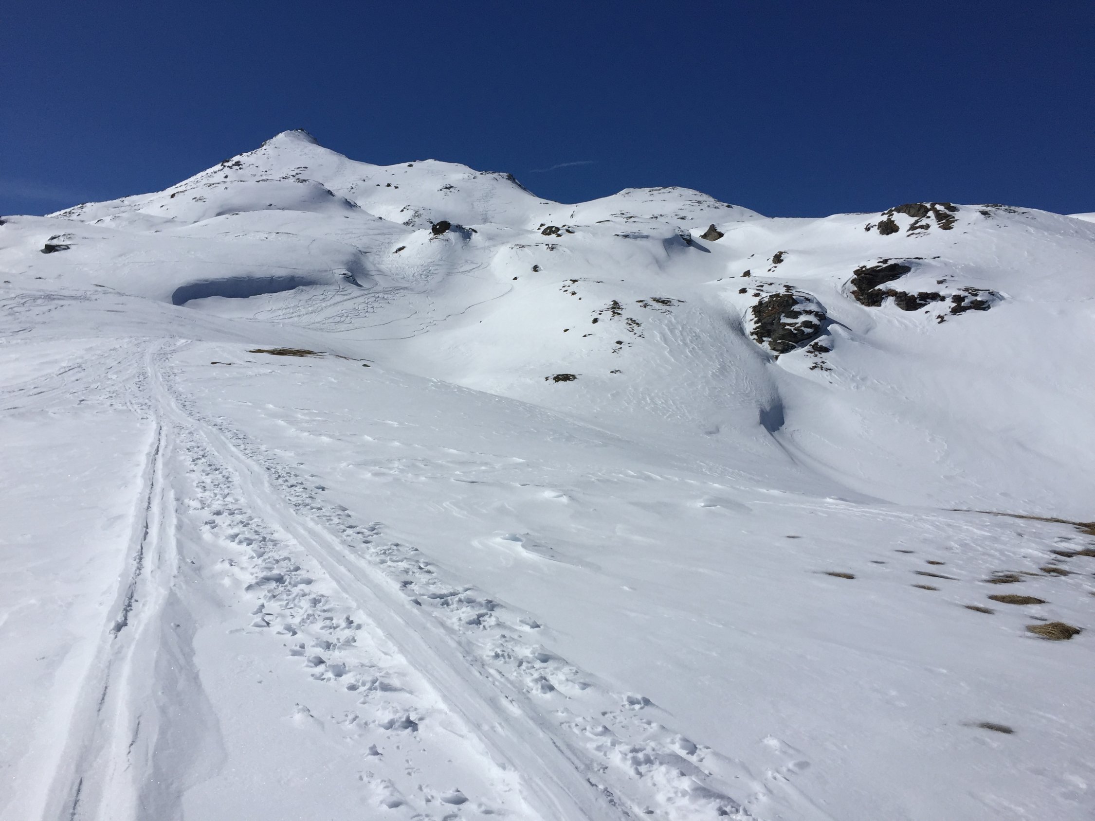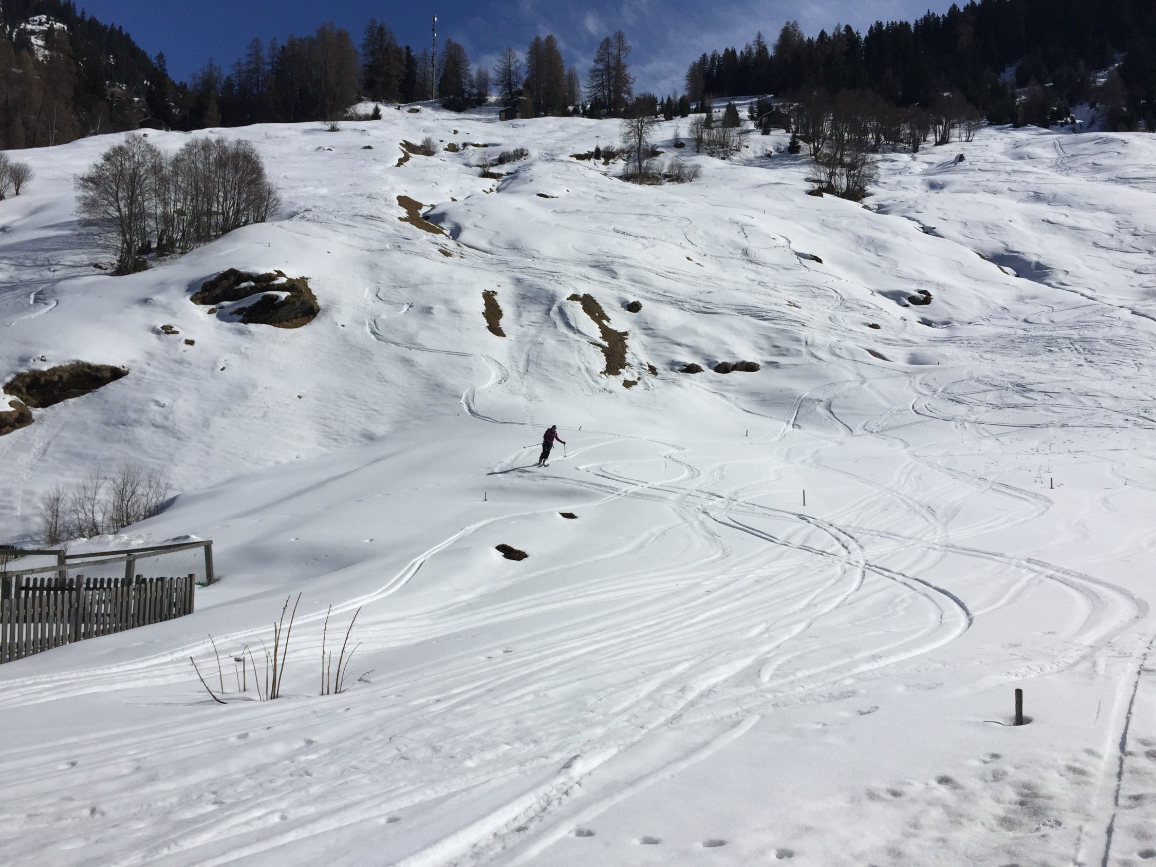 Tour ab Vals noch gut machbar. Jedoch weisen die Nordosthänge der Selva Alp zum Teil schon apere Stellen auf. Auch sonst war die Schneequalität auf der Tour eher mau: oft ein fieser Windharschdeckel und nur in ausgesuchten Mulden etwas angenehmer zu fahren. Ab Mittag war der Schnee in den unteren Bereichen feucht und klebrig.