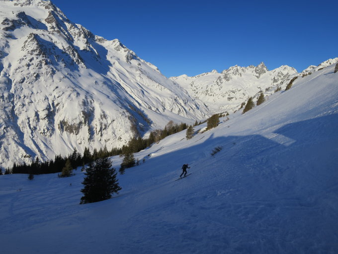 Gute Tourenbedingungen im ganzen Meiental. Abfahrt um 11.45 Uhr schien uns ideal.