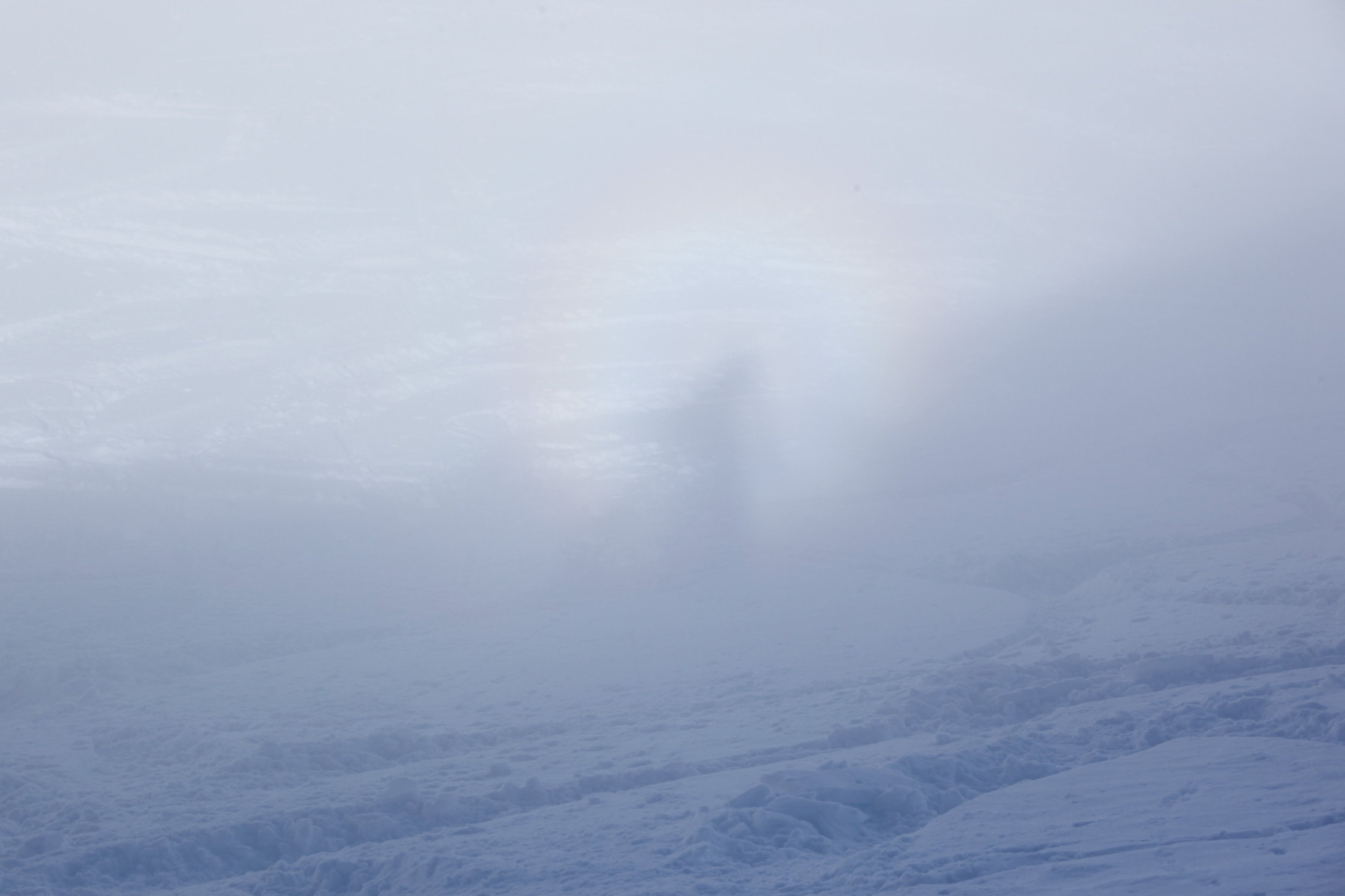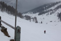 Schnee sehr gut, jedoch sehr dichter Hochnebel zwischen 2600 und 2800 m mit quasi null Sicht, daher in der Abfahrt extrem langsam die Aufstiegsspur hinabgetastet.