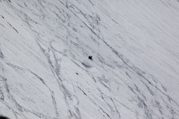 Vom Rindersattel 200 Hm Ski aufbinden, Rest über die Flanke in gutem weichen Schnee mit Ski möglich. Insgesamt mit Gegenanstieg nach Sunnbühl 2400 Hm.