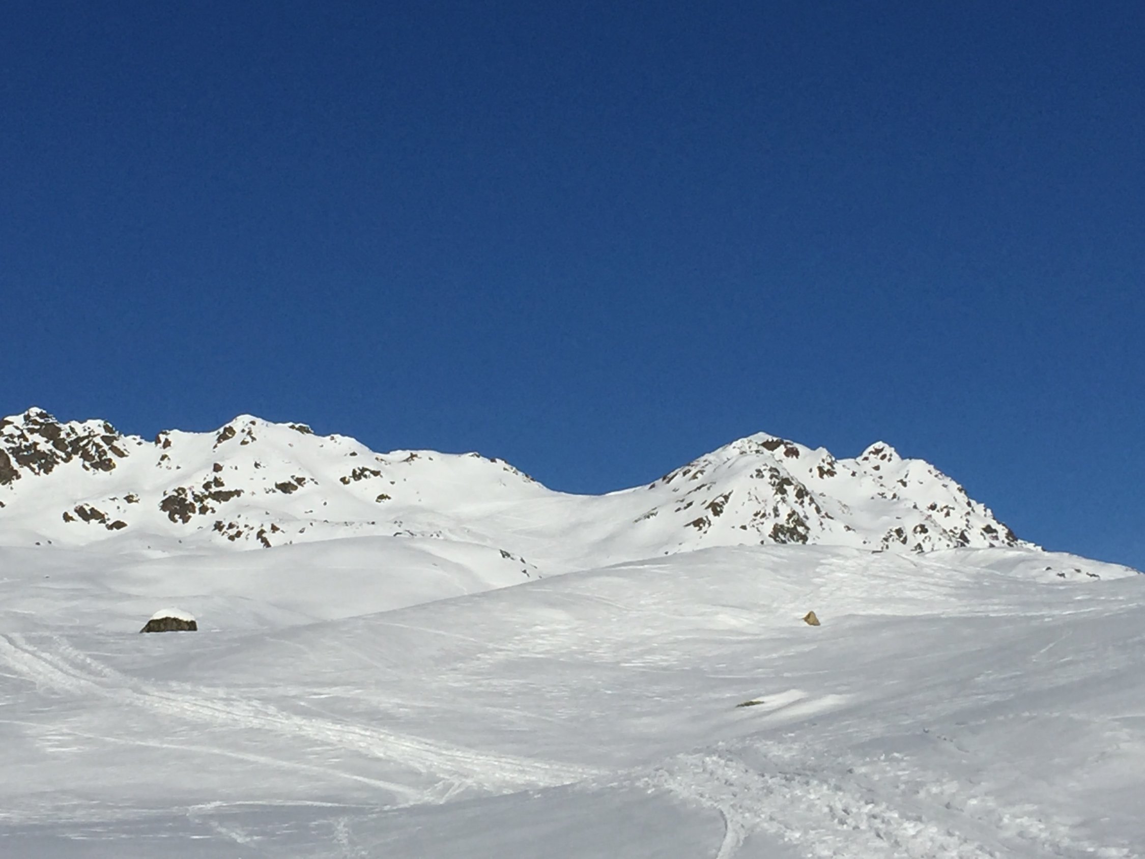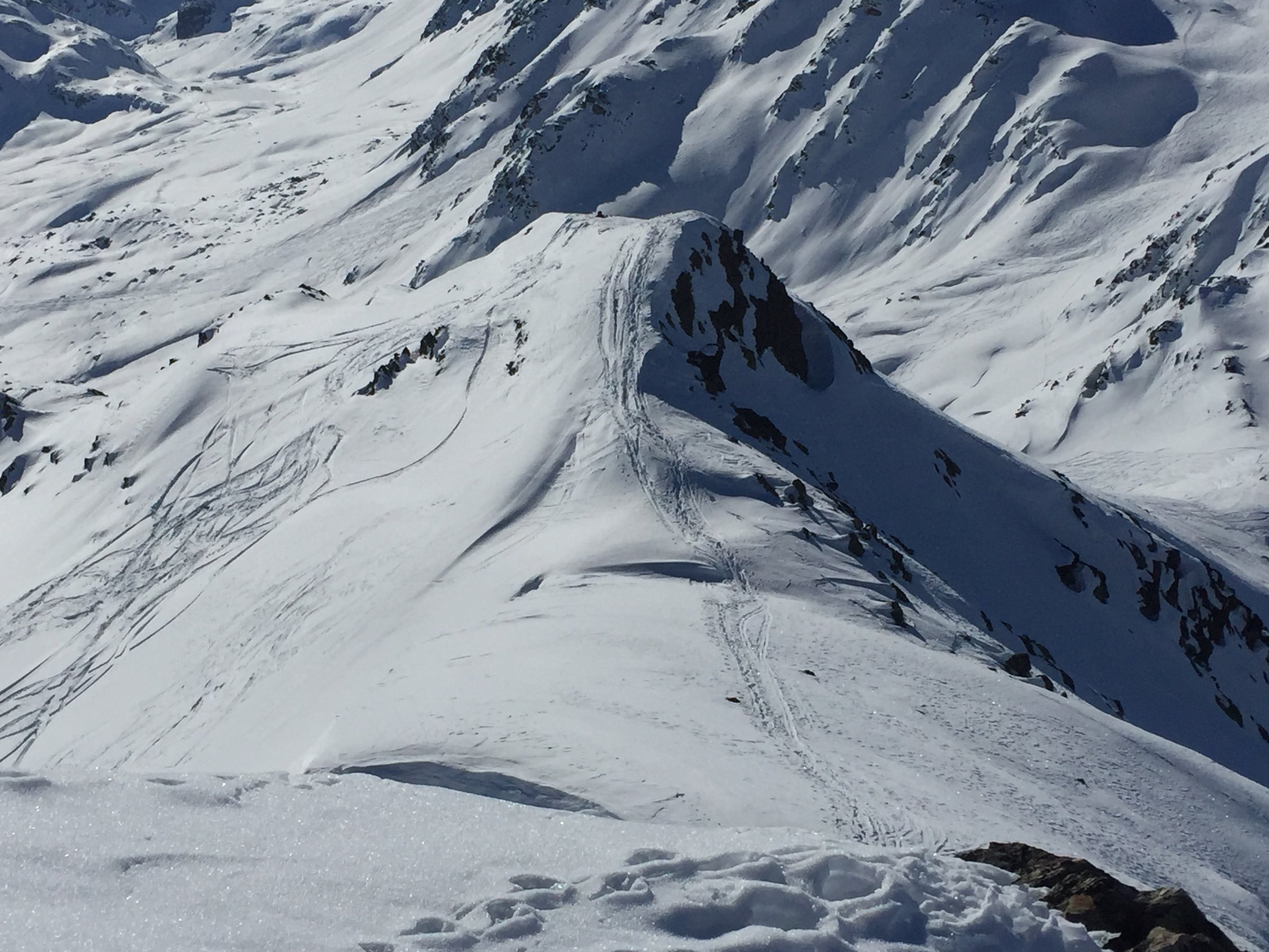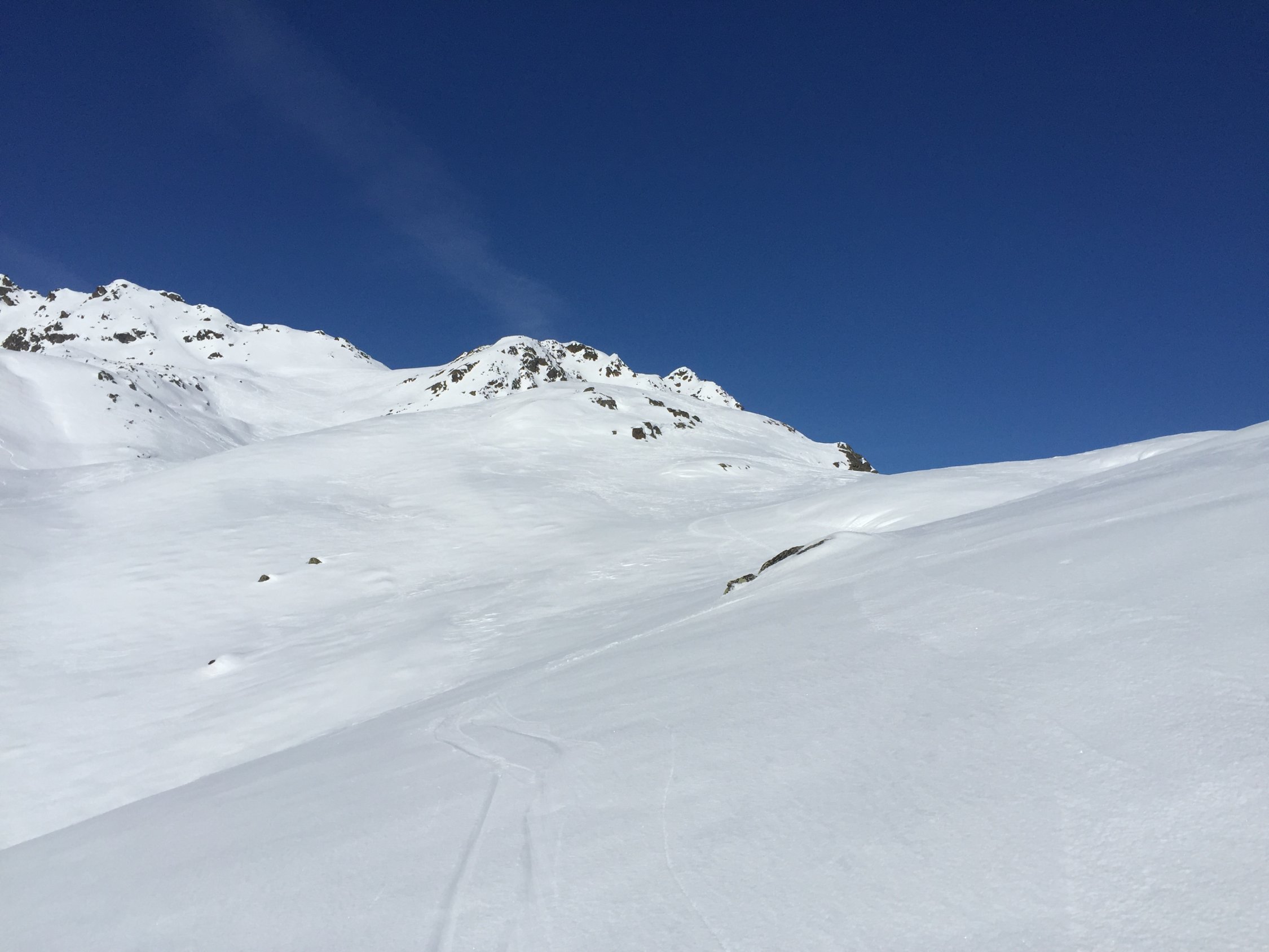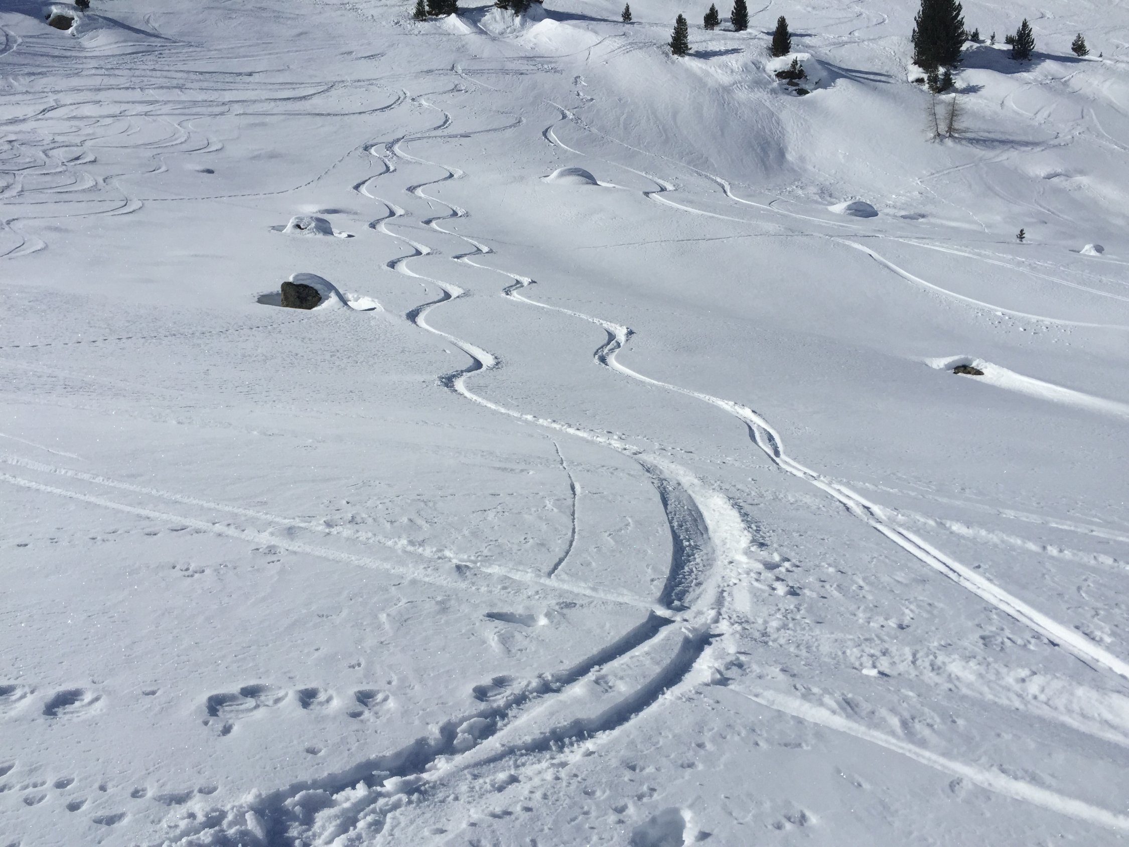 Die Touren am Flüela sind alle sehr rege begangen und entsprechend zerfahren, wo man noch Pulver findet (siehe Fotos vom Sentisch).
