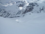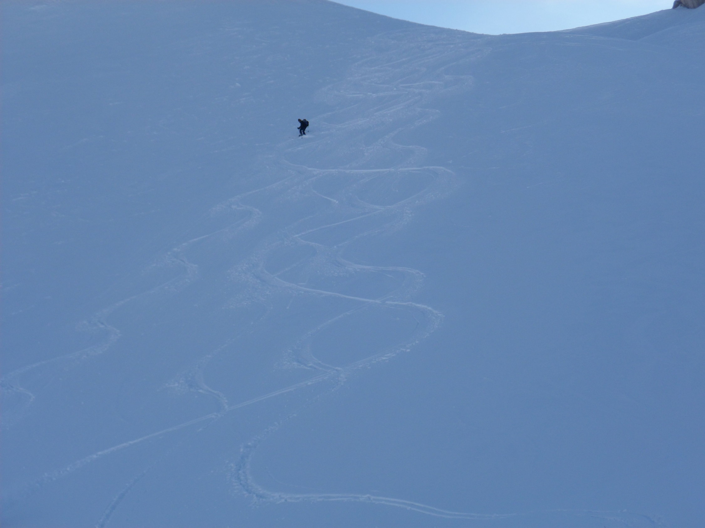 in den oberen Nord-Hängen 10 cm teilweise leicht gedeckelter Neuschnee. Aberschön zum Fahren,