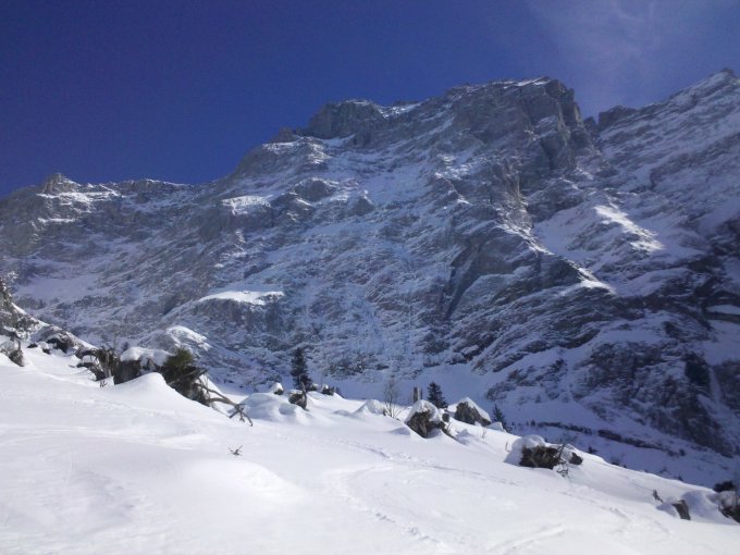 Ruchhälen ist relativ hart, teils Lawinenschnee, darüber < 5 cm Pulver. Aufstieg komplett mit Ski und Harscheisen möglich. Umliegende Hänge sind bereits gut "gekommen" und es ist recht ruhig gewesen.