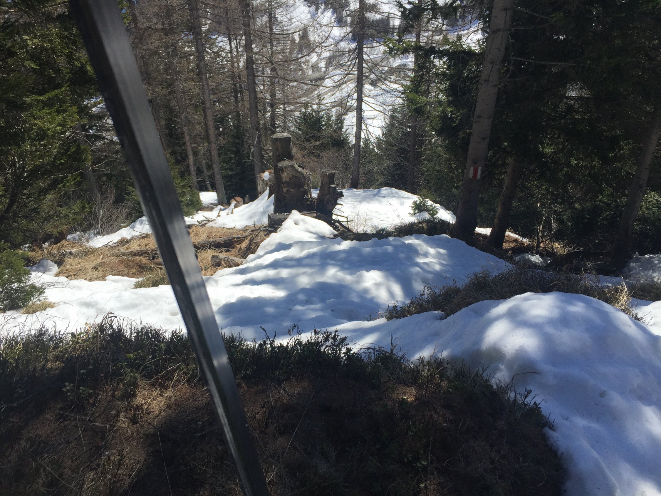 Auf- und Abstieg durch den Wald müssen Ski getragen werden. Sonst bis zum Gipfel sehr gute Verhältnisse.