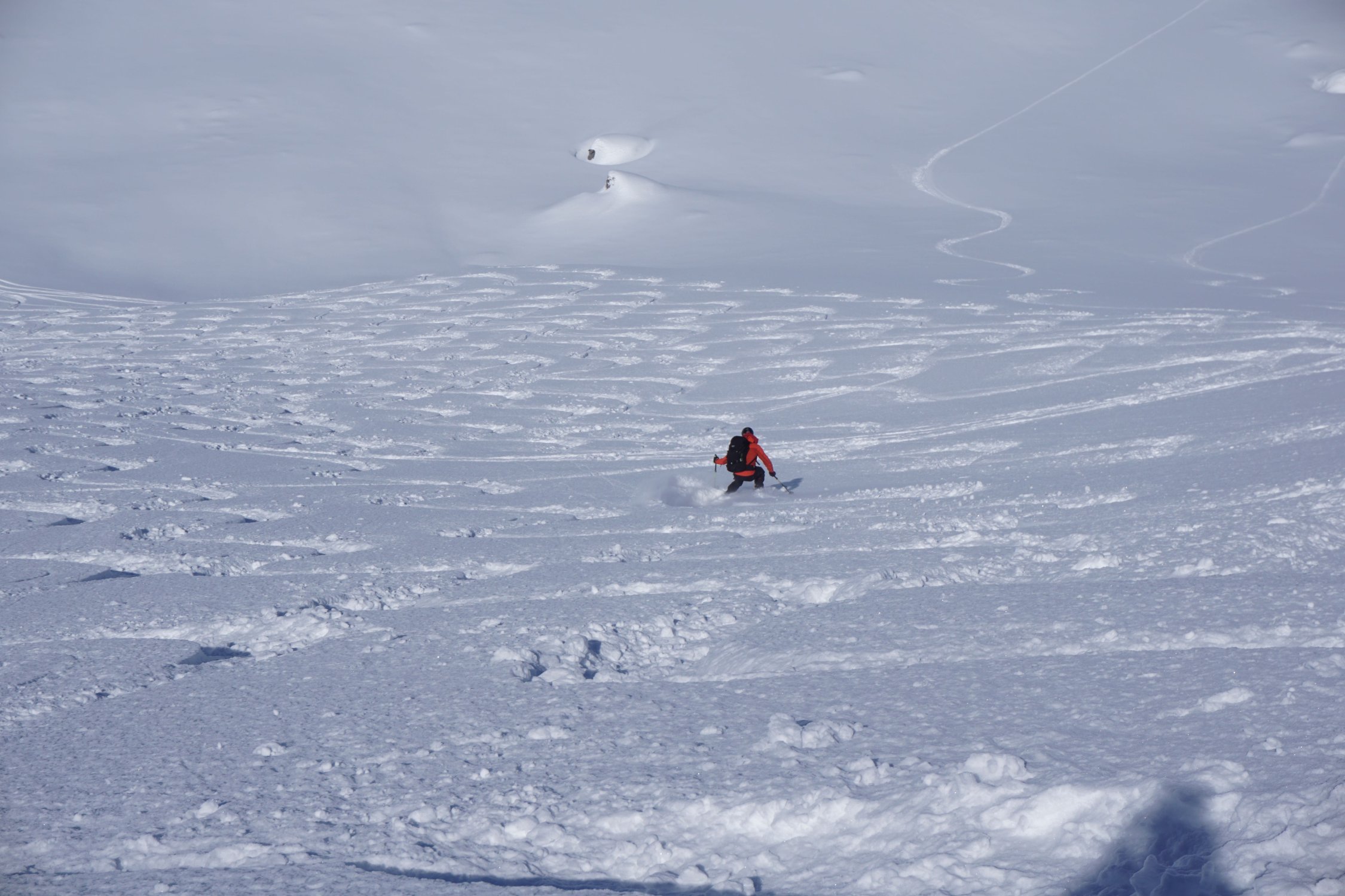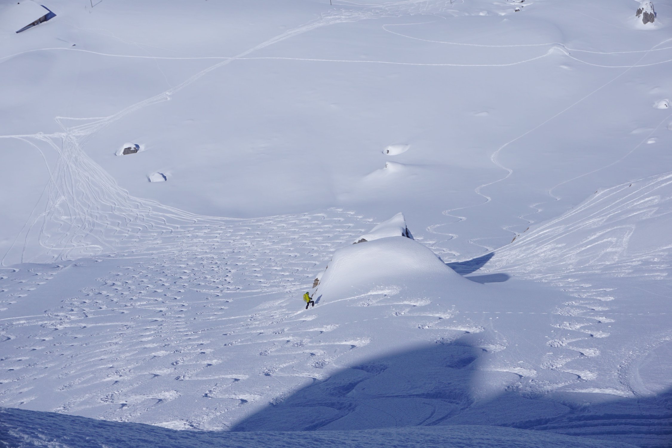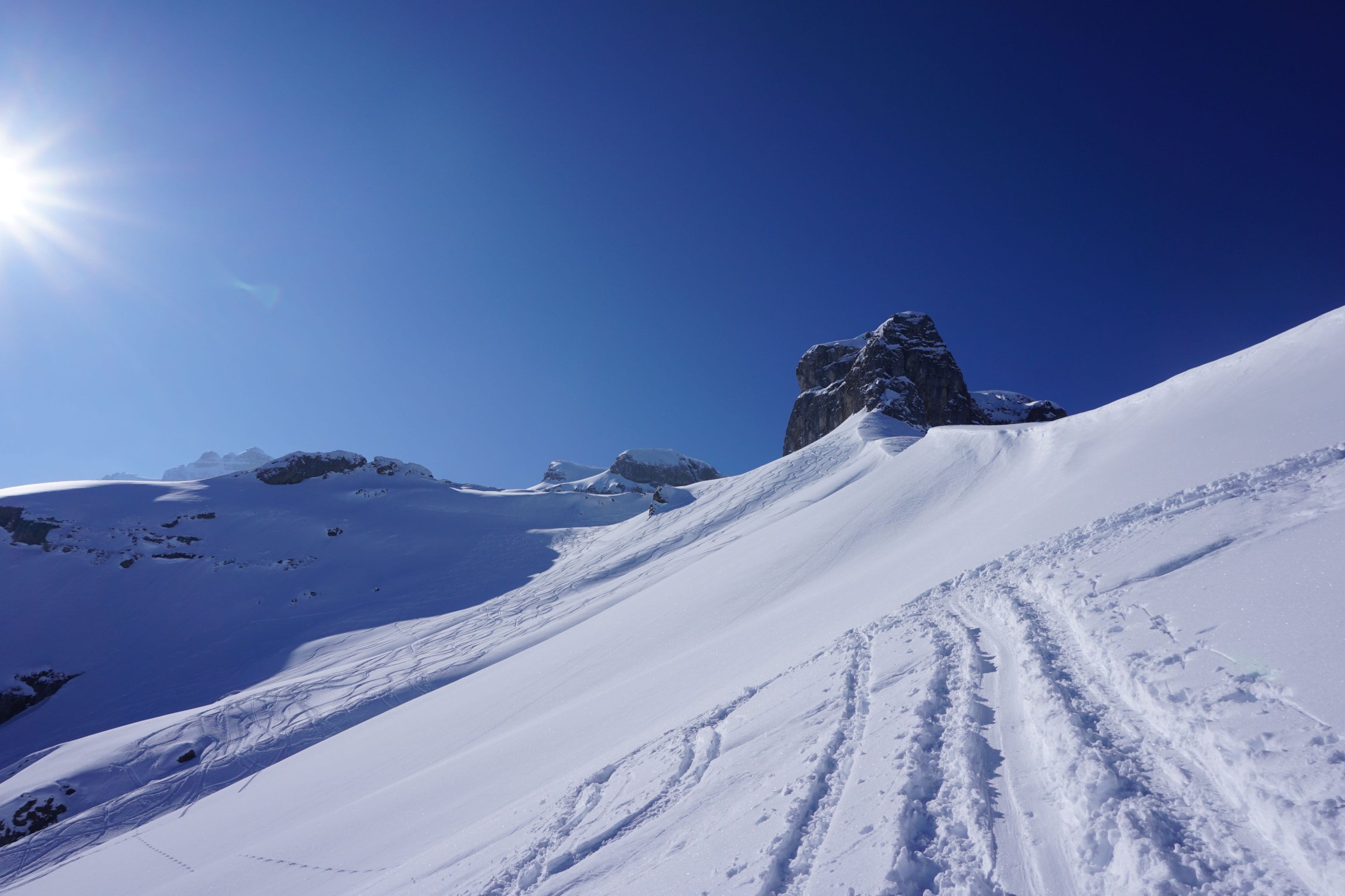 Abfahrt auf Route 111b direkt über die Nordflanke des Bundstockes