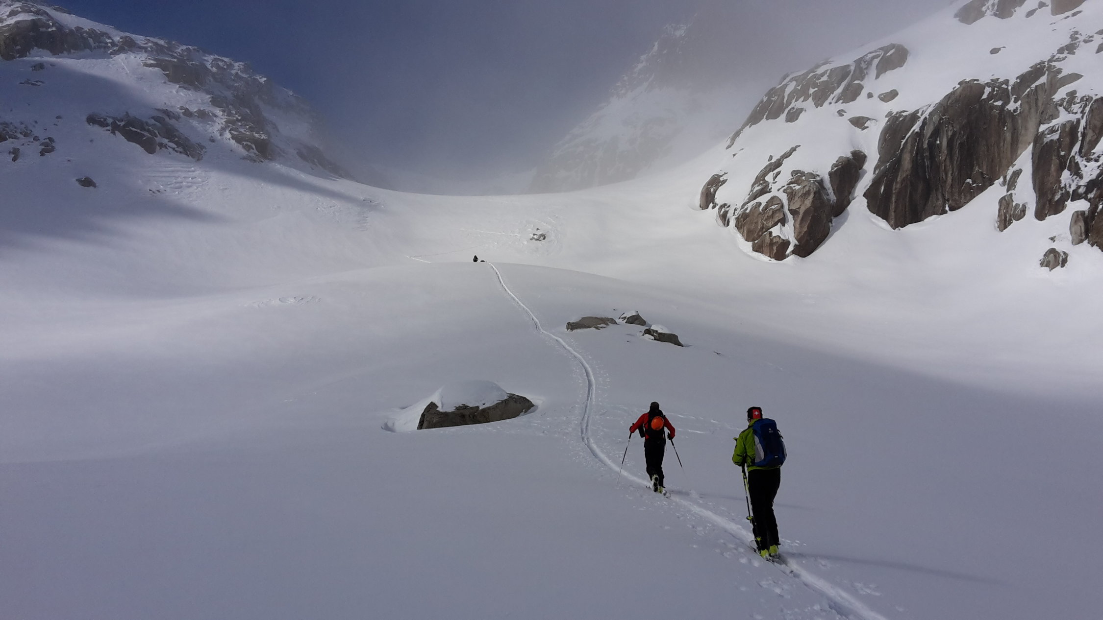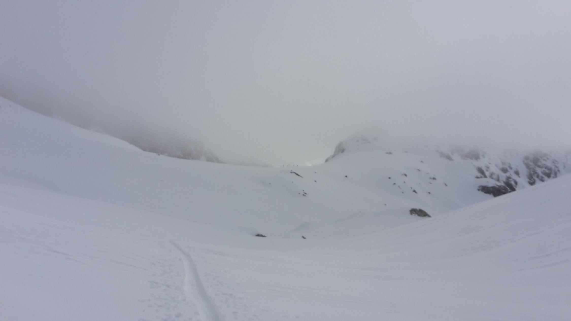 Danke für das Spuren, sonst wäre die Orientierung sehr schwierig gewesen, für den Audstieg waren heute keine Harscheisen nötig.