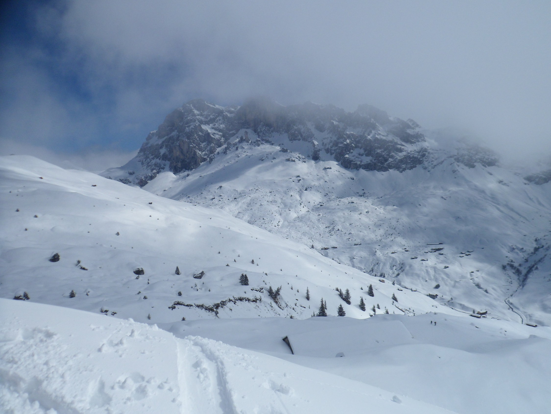 Wir sind dann wieder hochgestiegen und noch vom Bach unten an Obersäss ca. 1950 auf den Schafberg separater GPX-Track der Abfahrt. Batterie war leer. Siehe weiteren Gipfelbucheintrag Scahafberg