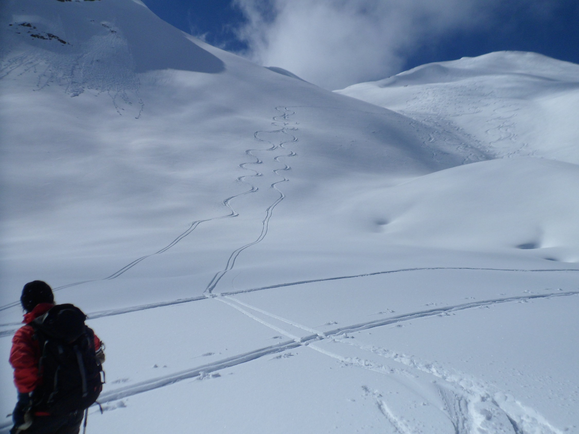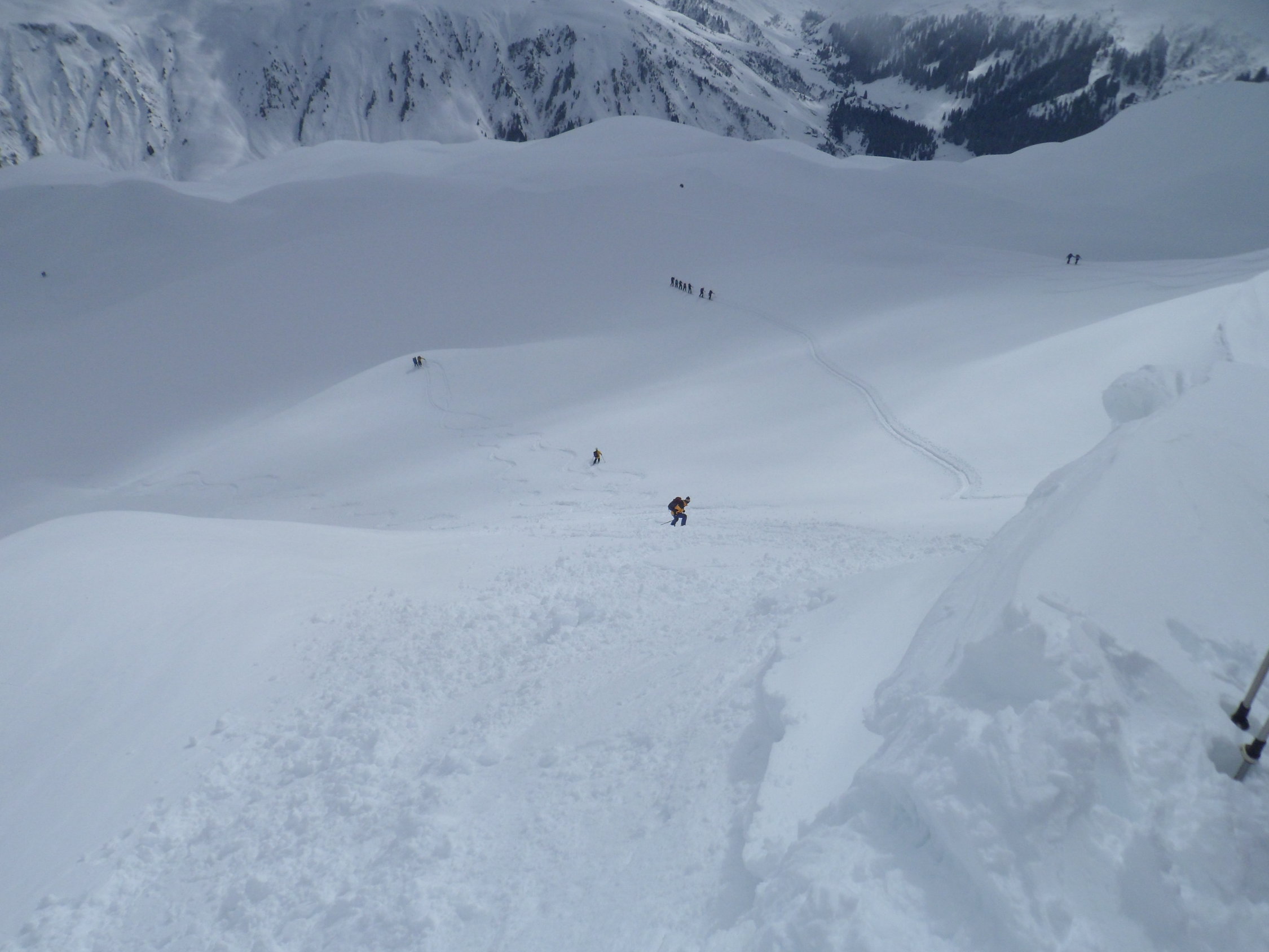 Ein Skifahrer hat im Norhang des Girenspitz eine kleine Schneebrettlawine ausgelöst ca. 80 Meter lang.