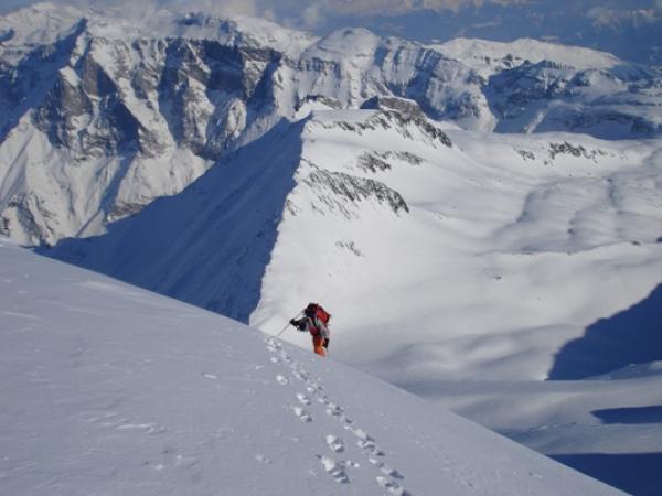 Von Pignui am Rotstock vorbei zum Panixer Pass, über markante Gipfelflanke zum Hausstock, die letzten Meter zu Fuss