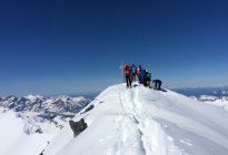 Sehr gute Aufstiegsspur (merci an die Spurer) mit ca. 30cm Pow of harter Unterlage. Tour gut ohne Harscheisen machbar, Gipfelaufstieg vorteilhaft mit Steigeisen.