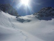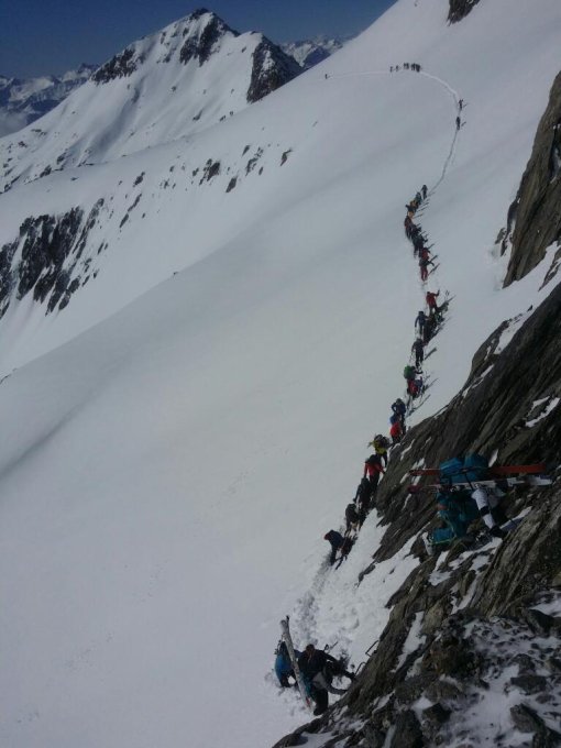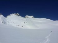 Über Nacht gut 20 cm Neuschnee auf Altschneedecke; mit N/NW-Wind in die Südhänge verfrachtet. Mehrere Wumm-Geräusche im Kessel südlich des Pez Ault. Traverse mit Abständen, wobei die nachfolgenden Hundertschaften das wohl nicht mehr für so wichtig hielten. Folglich also eine sehr stabile Schneedecke.