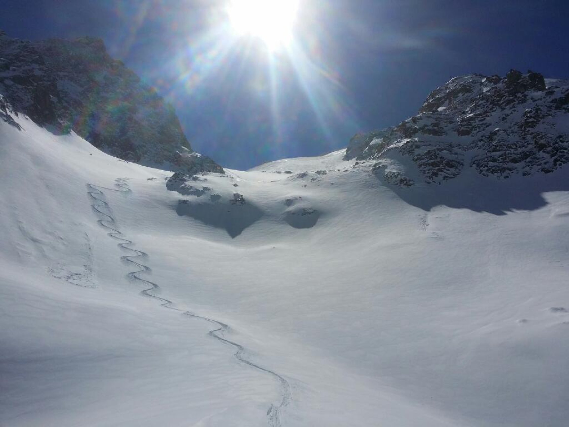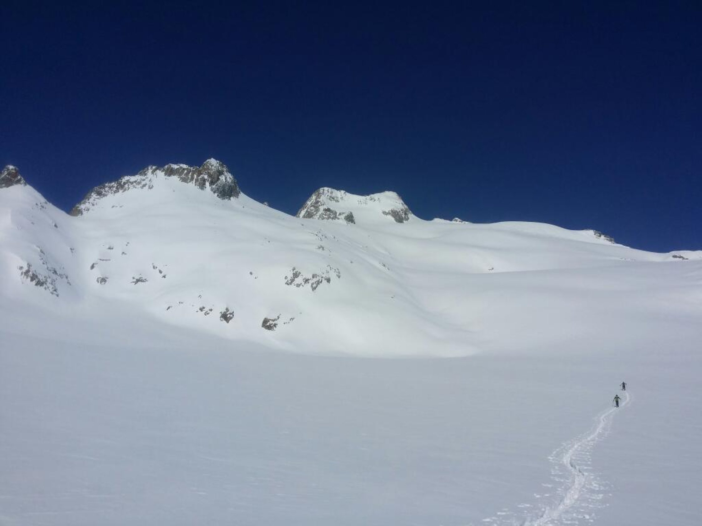 Milchplanggen gut fahrbar, allerdings der Altschnee sehr weich und deshalb wohl am Ende des Tages abgefahren. Unterhalb 1500 m war die Wärme schon die ganze Nacht in der Schneedecke.