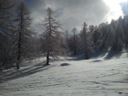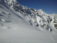Im oberen Teil 5-15cm verblasener Neuschnee. Sehr gute Verhältnisse. Man kann immernoch pulvrige Abschnitte finden.