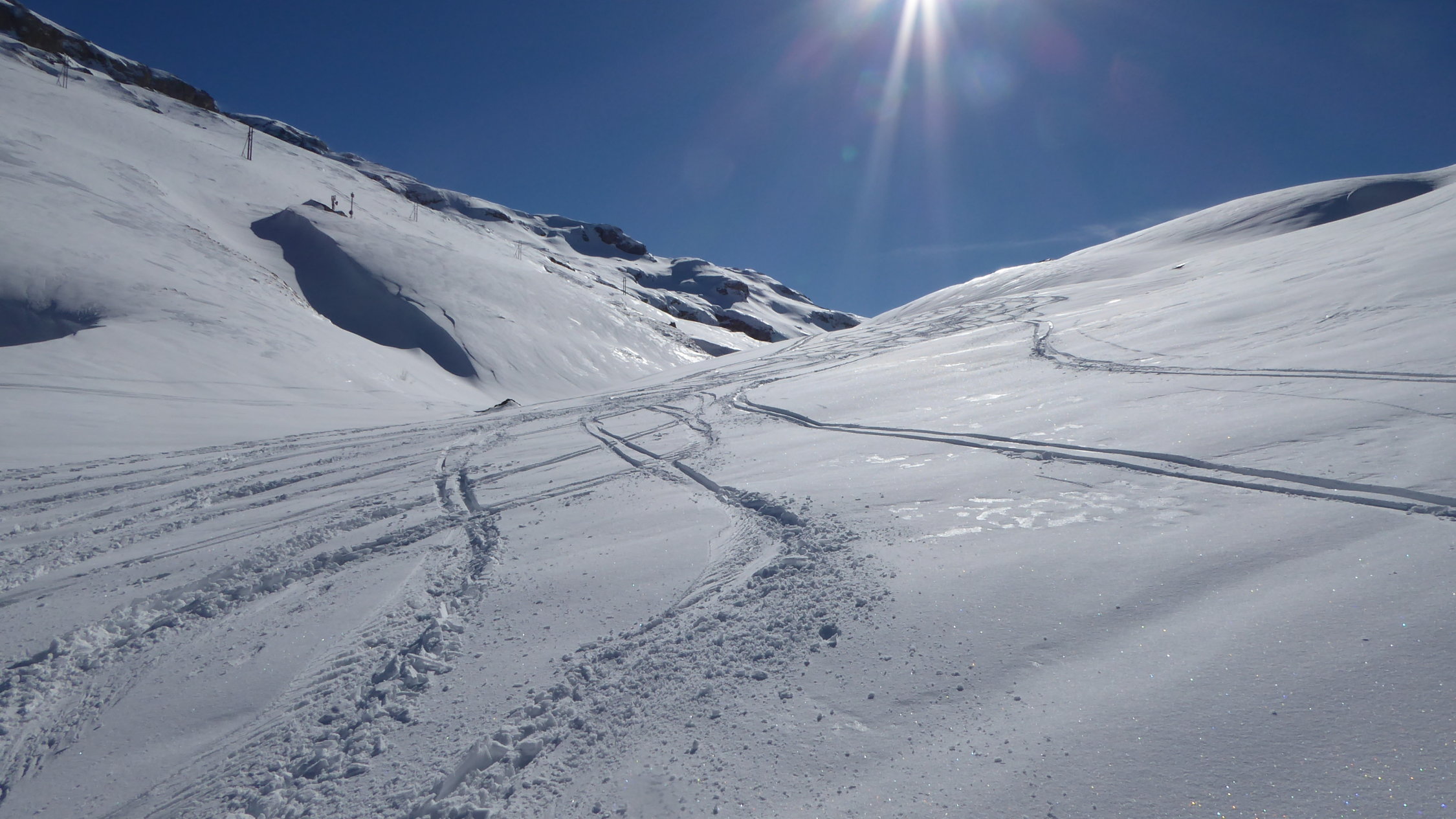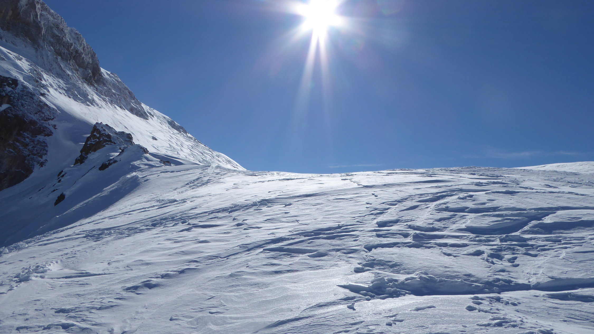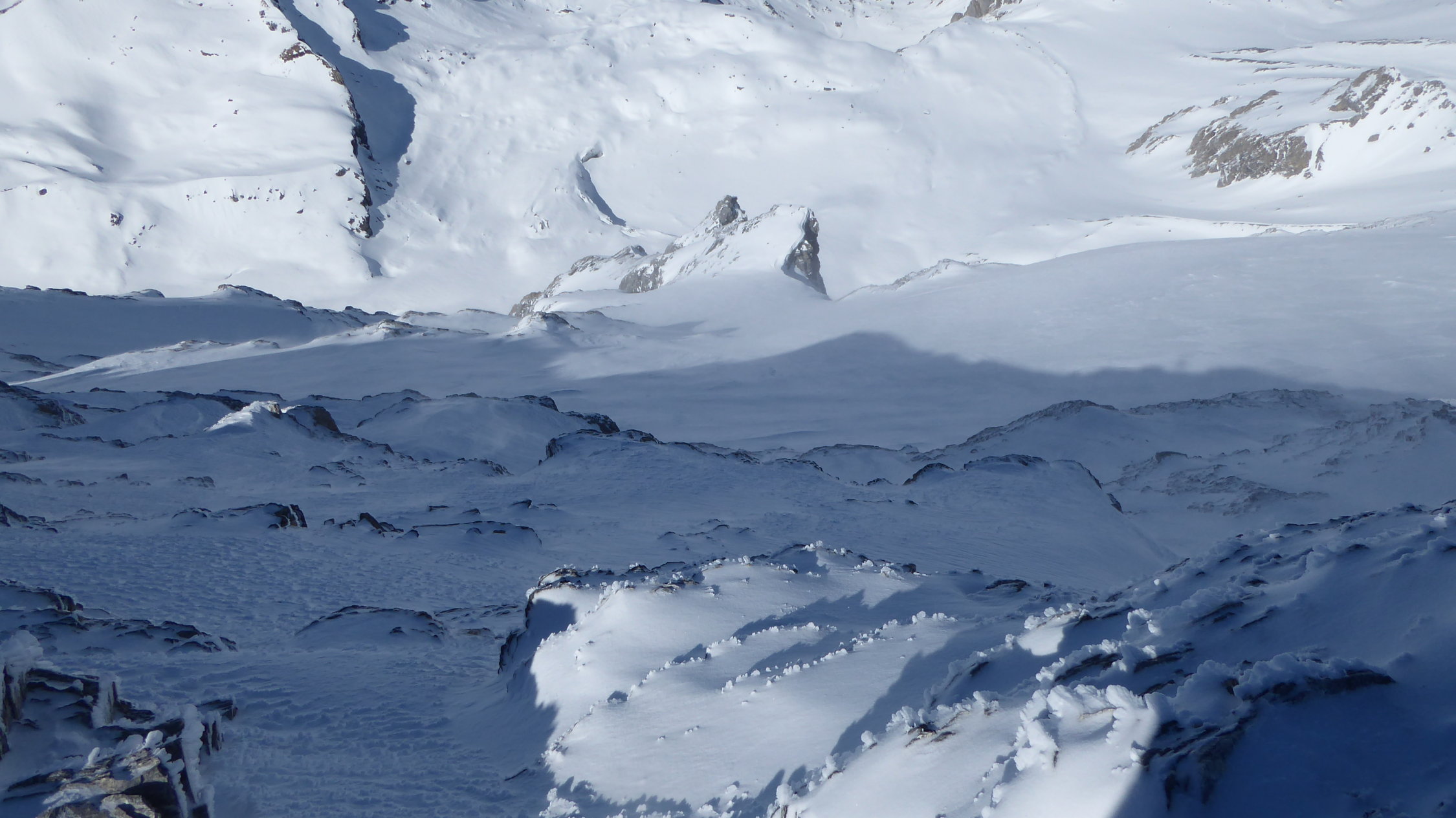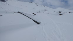 Neuschnee vom Karfreitag. Unten feucht,in der Mitte locker, oben verblasen.